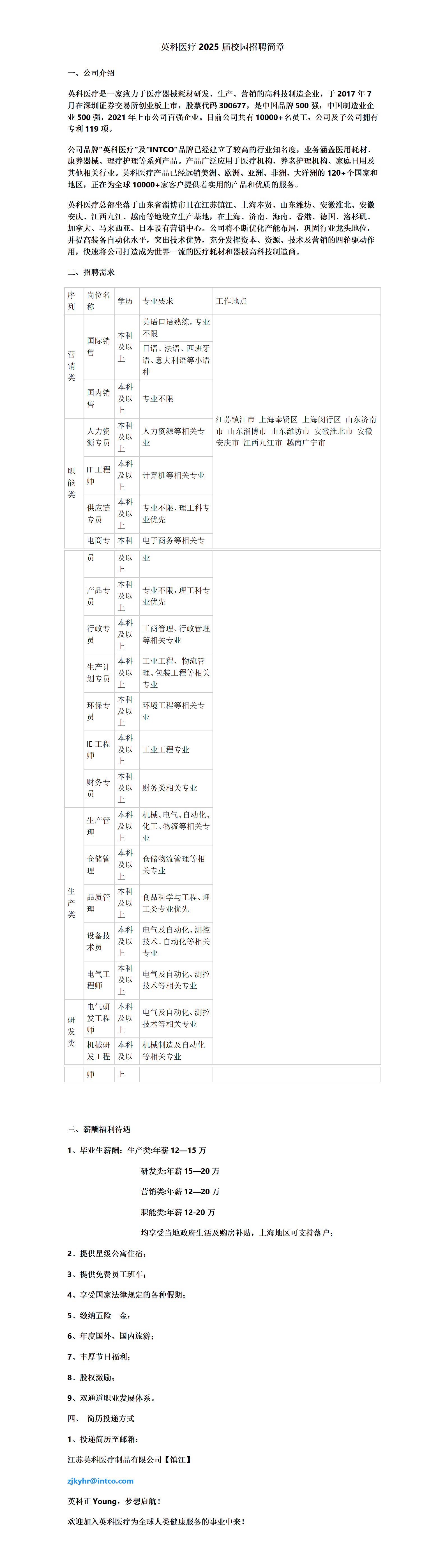 江苏英科医疗制品有限公司校园招聘