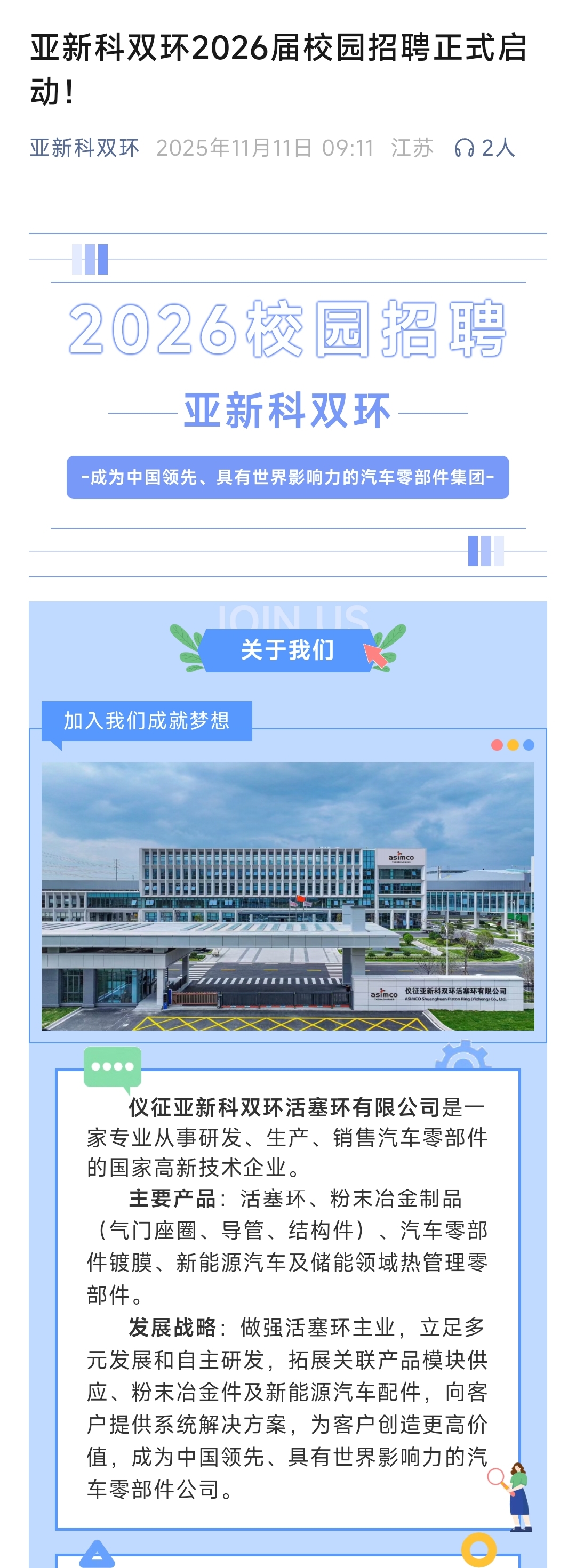 亚新科双环2026届校园招聘正式启动