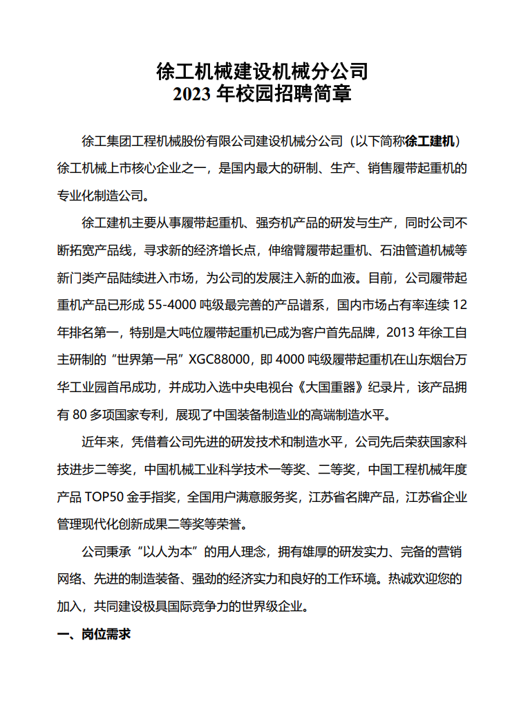 徐工机械建设机械分公司招聘