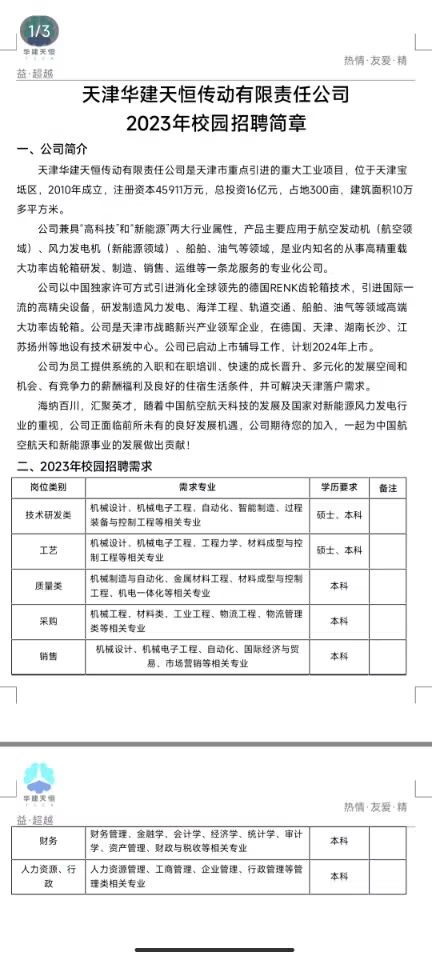 天津华建天恒传动有限责任公司招聘