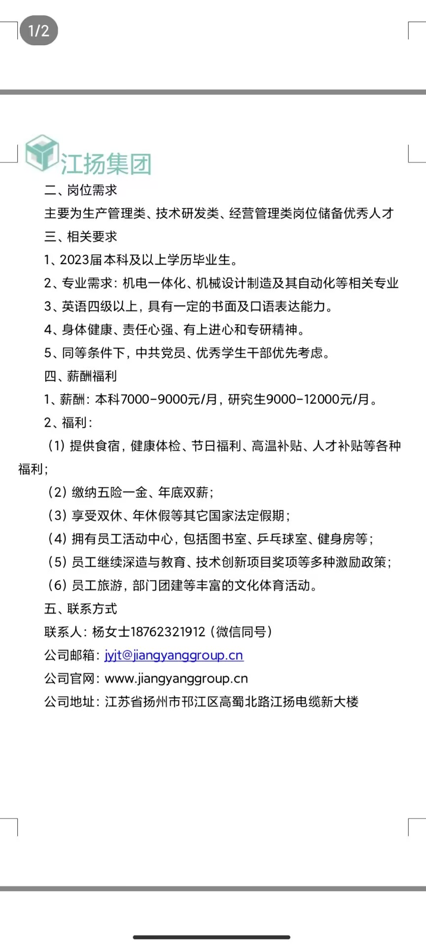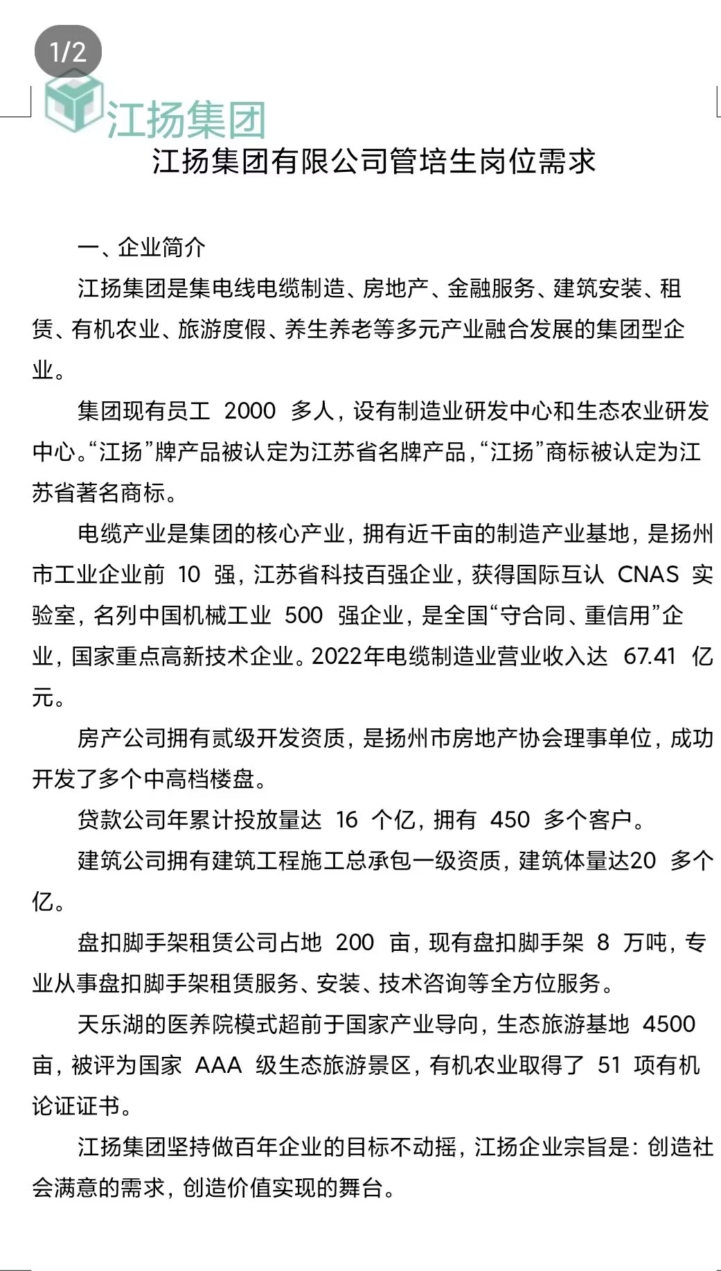 江扬集团有限公司管培生岗位招聘