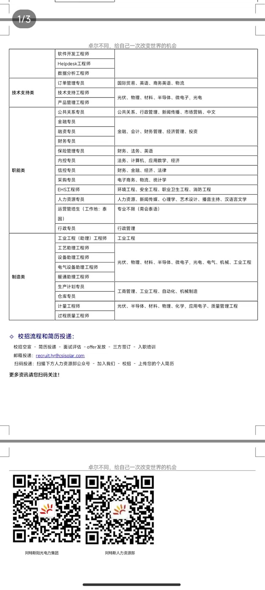 阿特斯阳光电力集团招聘