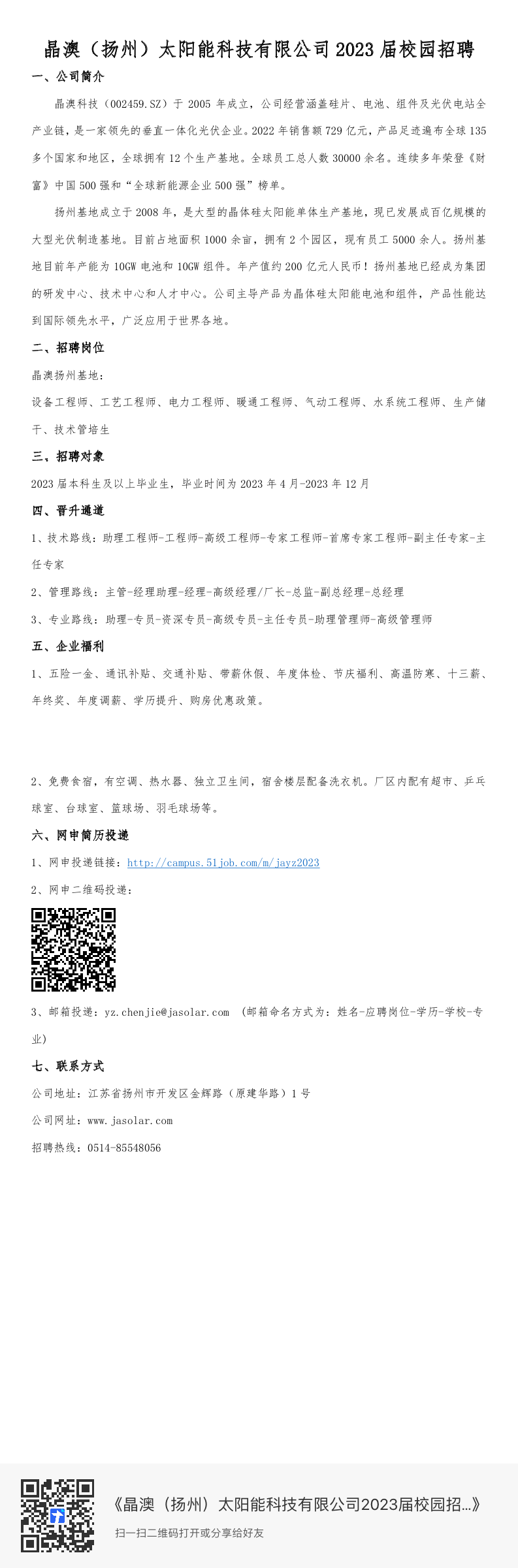晶澳(扬州)太阳能科技有限公司招聘