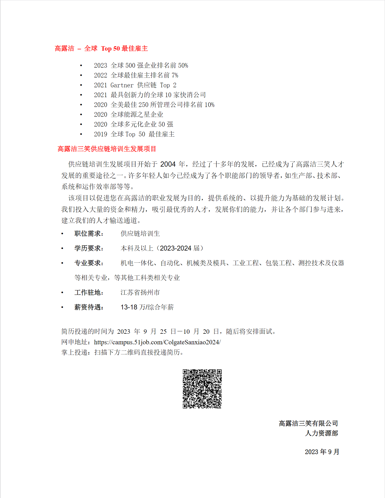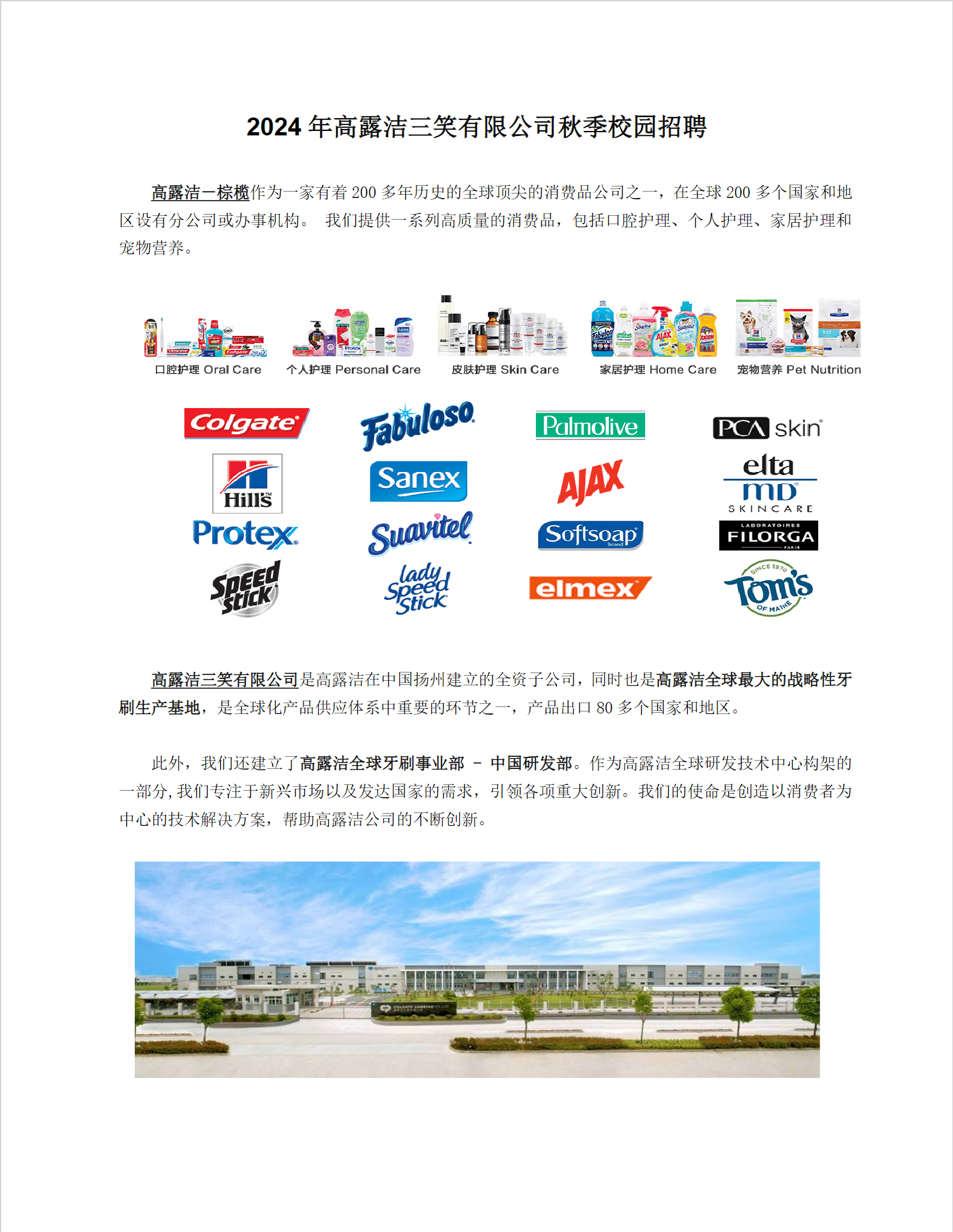 高露洁三笑有限公司校园招聘