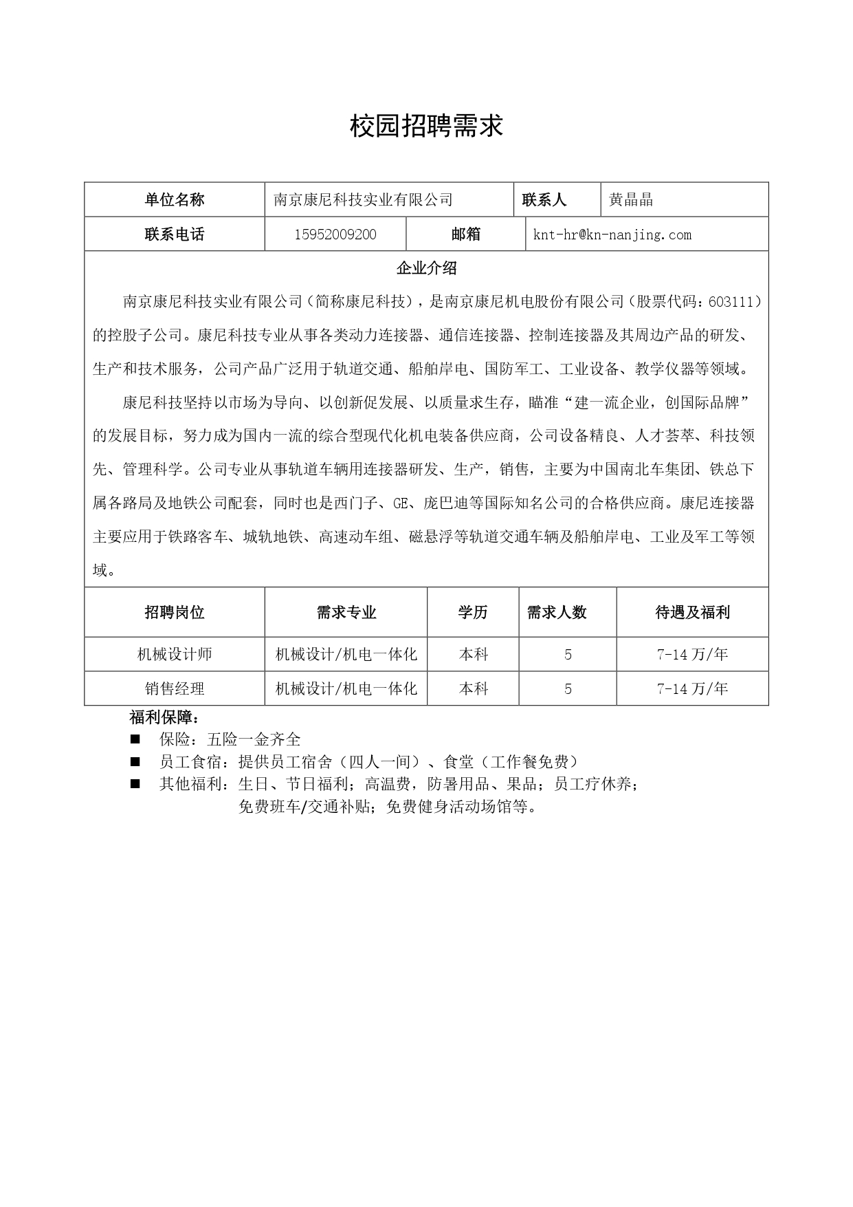 南京康尼科技实业有限公司校园招聘
