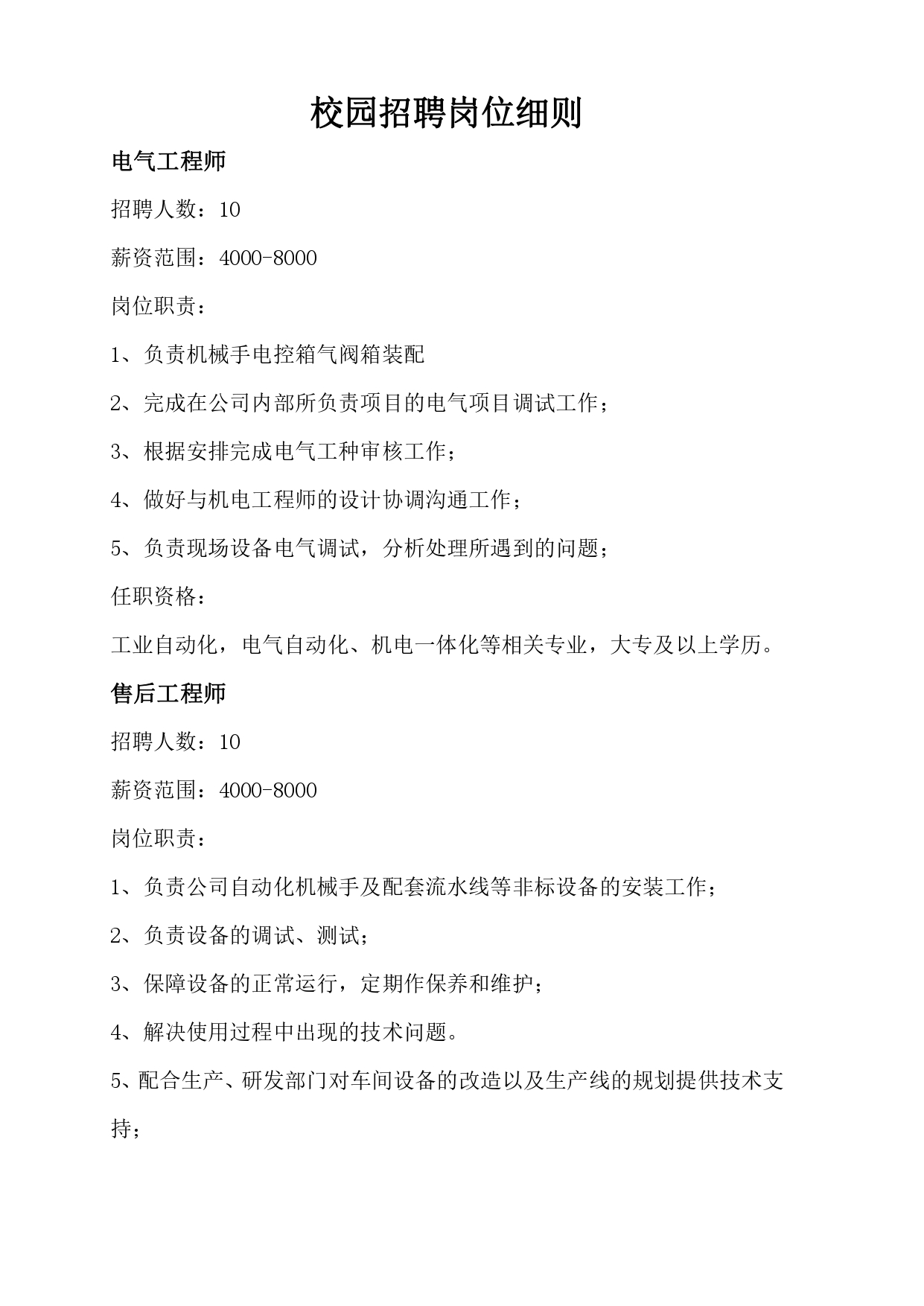 扬州威德曼自动化科技有限公司校园招聘