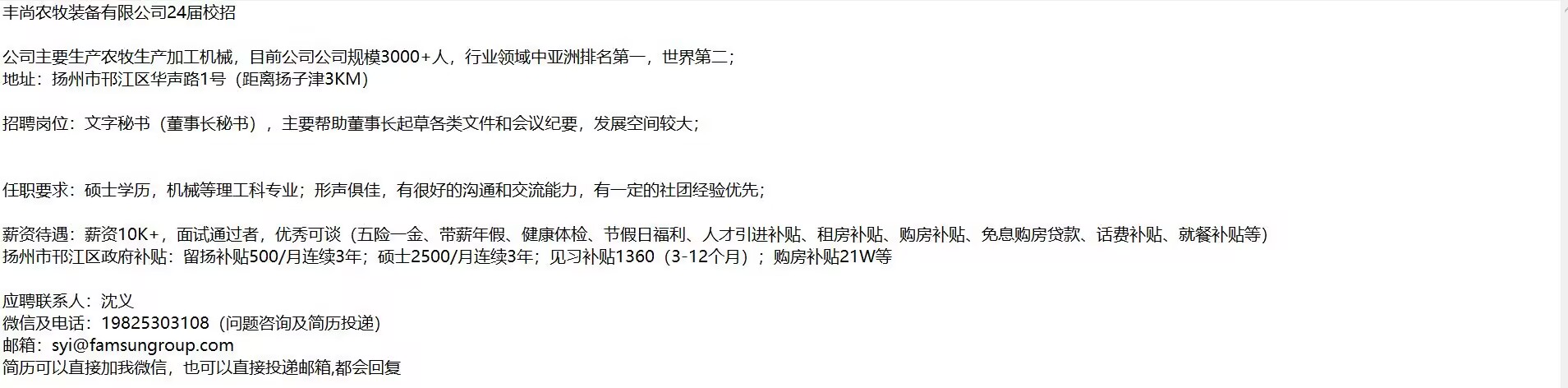 丰尚农牧装备有限公司校园招聘