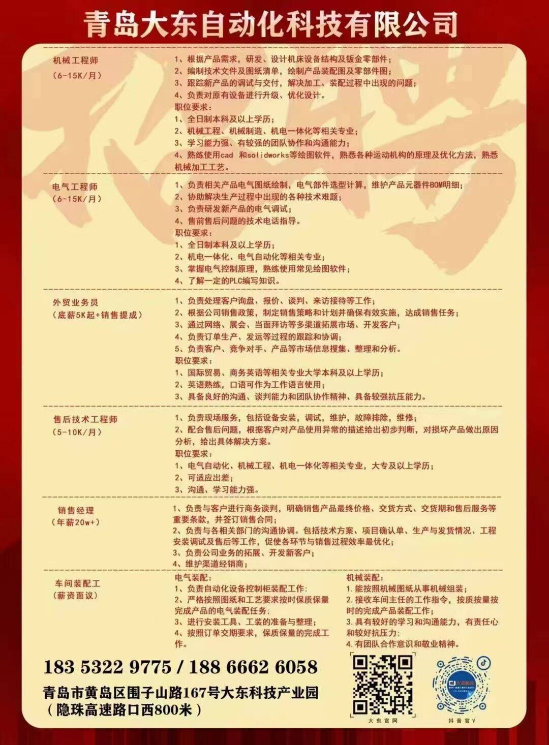 青岛大东自动化科技有限公司校园招聘
