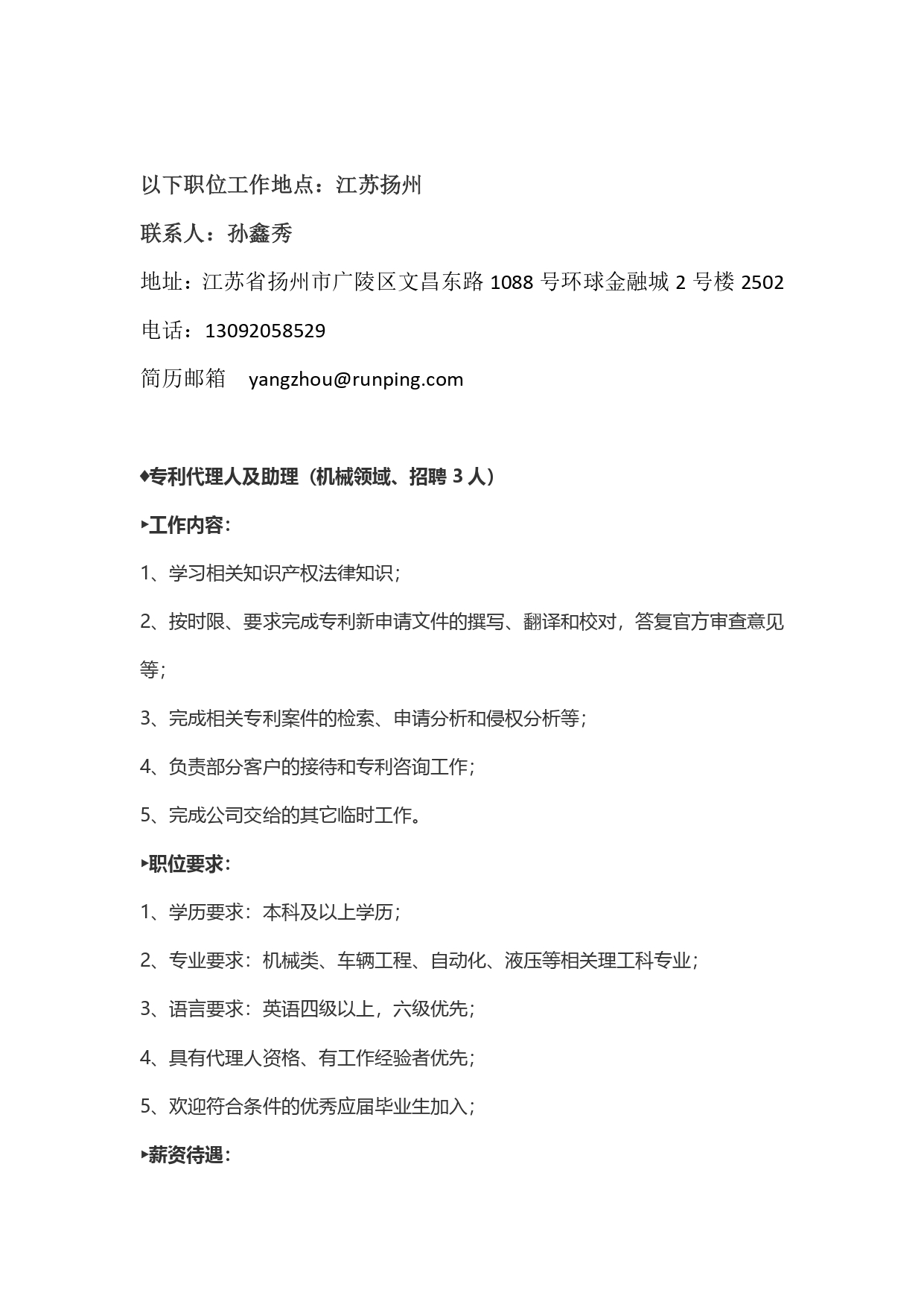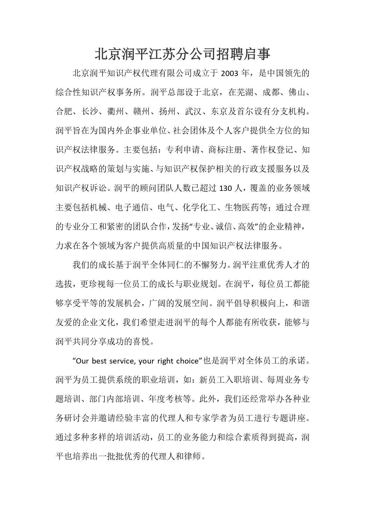 北京润平江苏分公司校园招聘