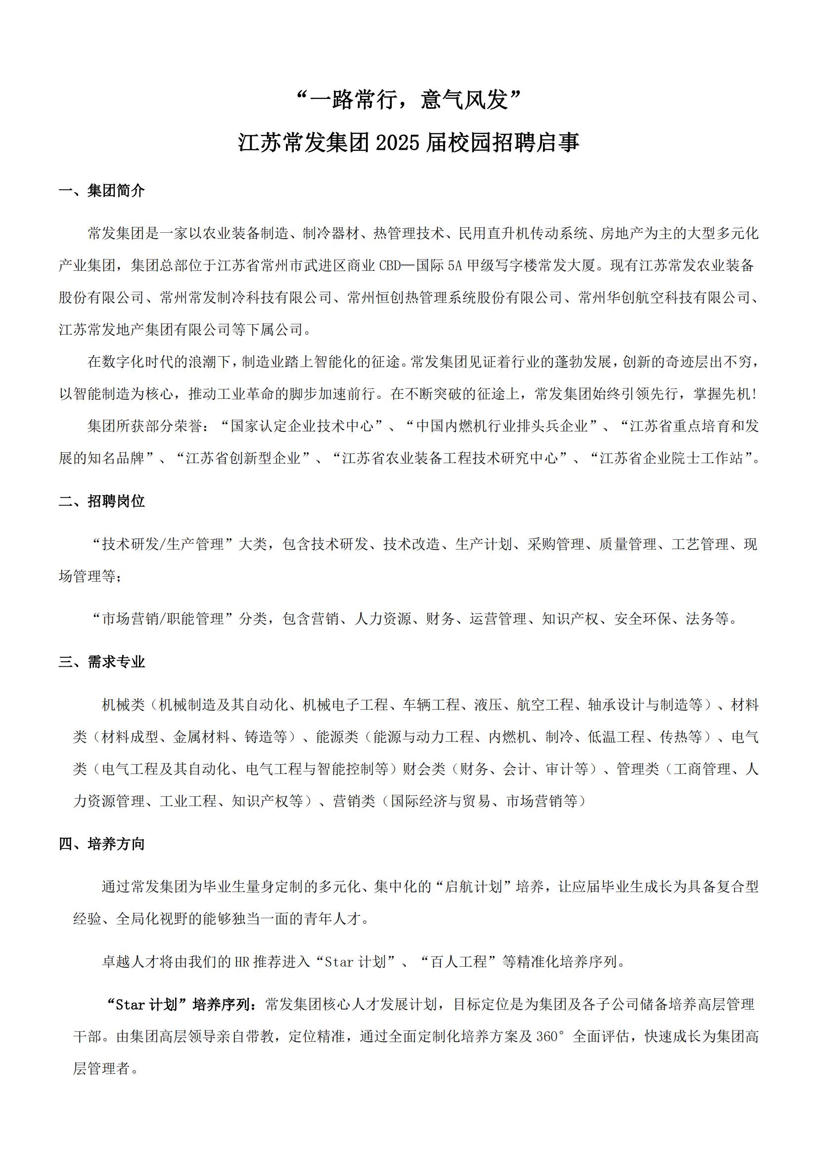 江苏常发集团2025届校园招聘