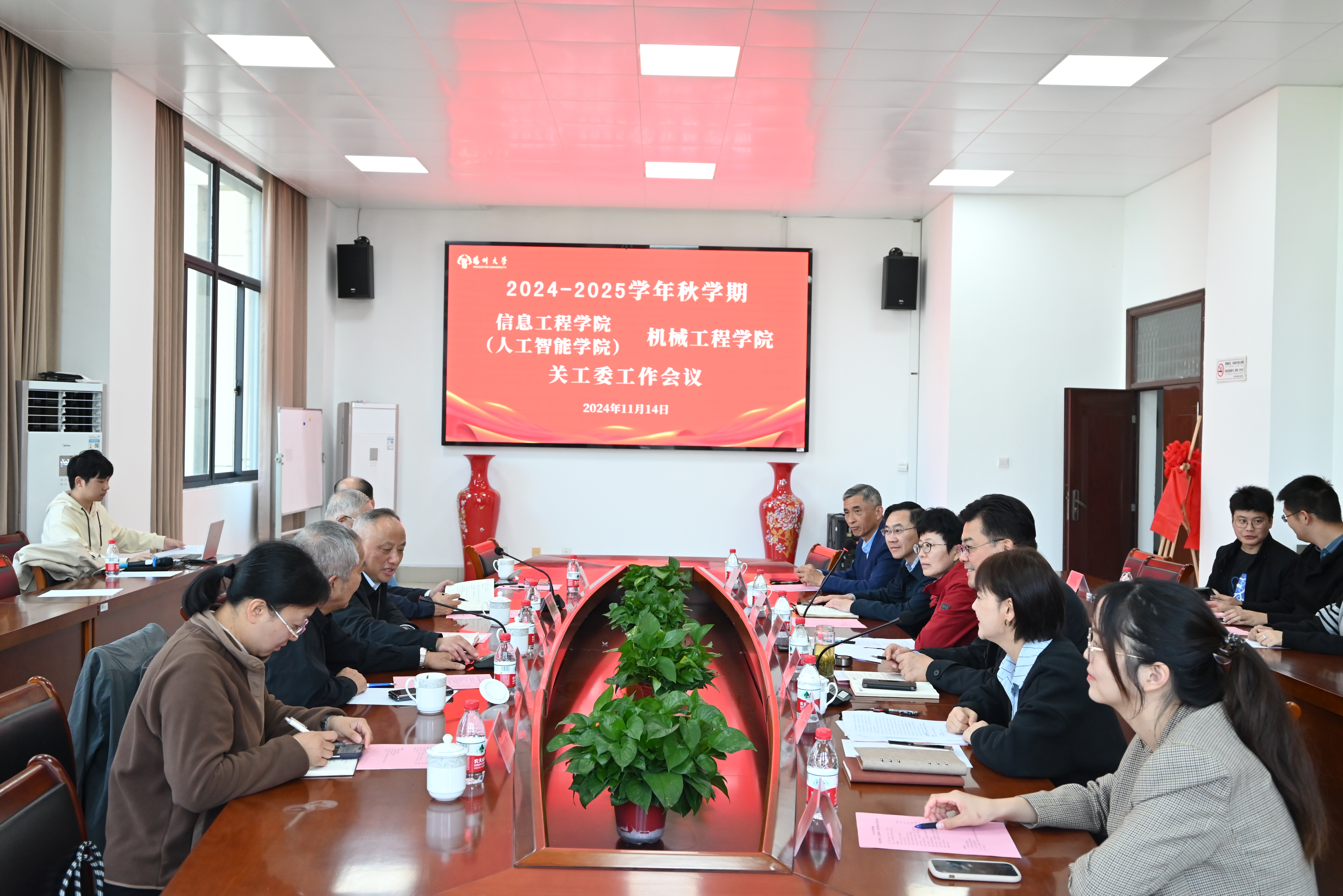 11月14日上午,我院与信息工程学院(人工智能学院)在力行楼s318会议室联合召开2024-2025学年秋学期关工委工作会议。校关工委办公室主任、副秘书长刘汉柏,江阳路北校区离退休党总支书记周详,江阳路北校区离退休党总支委员、第二党支部书记、结对共建老同志李宜祥,江阳路北校区离退休第一党支部委员、结对共建老同志张卫宇,信息工程学院(人工智能学院)党委书记吕红梅,我院党委书记尤玉军,信息学院党委副书记崔益军,我院党委副书记黄文婷,信息工程学院(人工智能学院)关工委常务副主任包振强,校关工委办公室秘书王琳,学院关工委委员代表、共建班学生代表参加会议。我院党委副书记黄文婷主持会议。