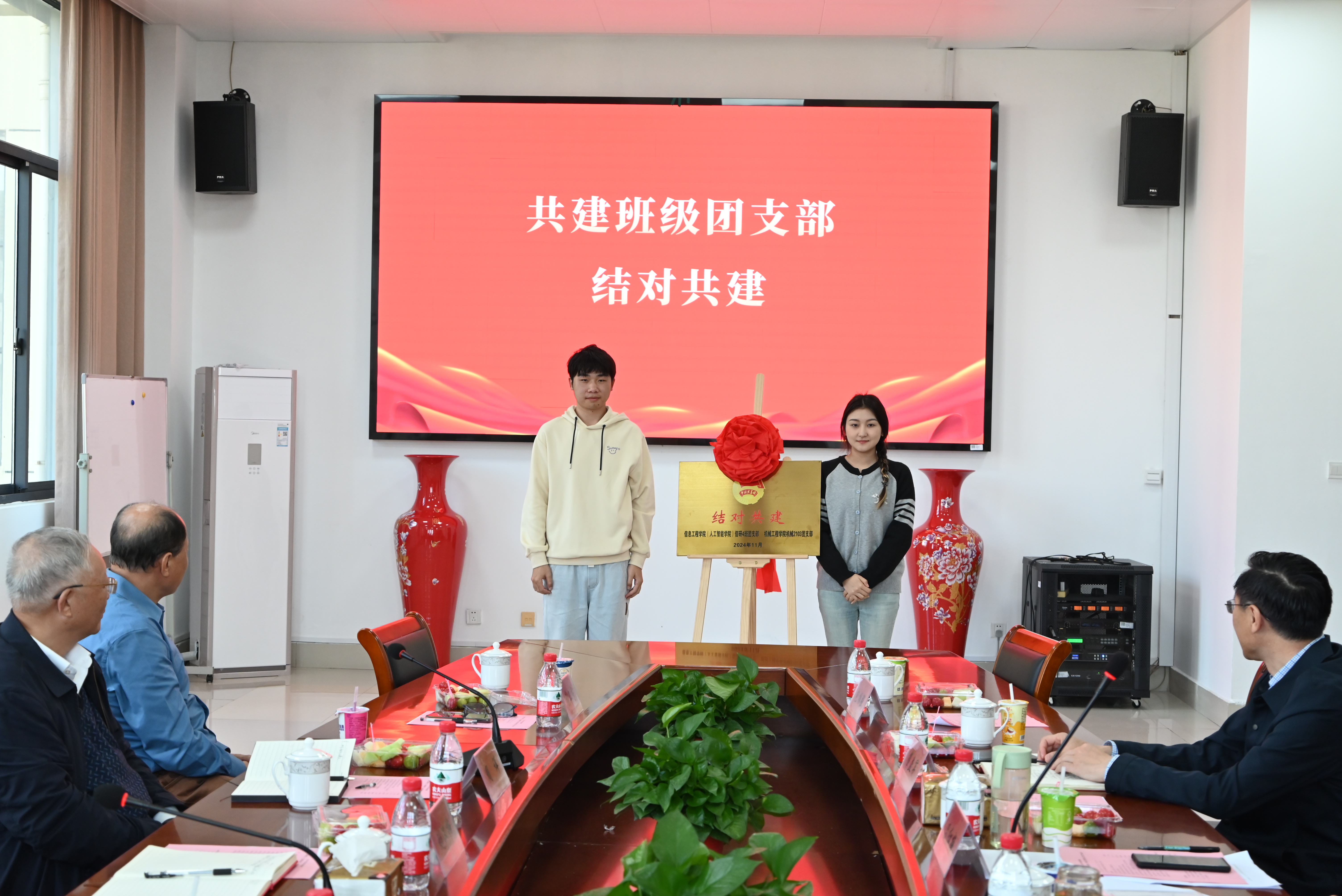 会上,共建班级分别进行了工作汇报,结对共建老同志也分别对今年两家学院开展的关工委工作进行了总结回顾。信研4班团支部与机械2103团支部举行了团支部结对共建仪式。信息学院党委书记吕红梅、我院党委书记尤玉军对校关工委领导、老同志的到来表示热烈欢迎,先后汇报了学院概况、关工委工作开展情况以及对未来工作的展望,表示今后将进一步拓展两家学院合作形式,充分利用资源,最终实现老少同行、双向奔赴,同时也希望能够增加关工委结对共建平台,推广更多老同志的经验。