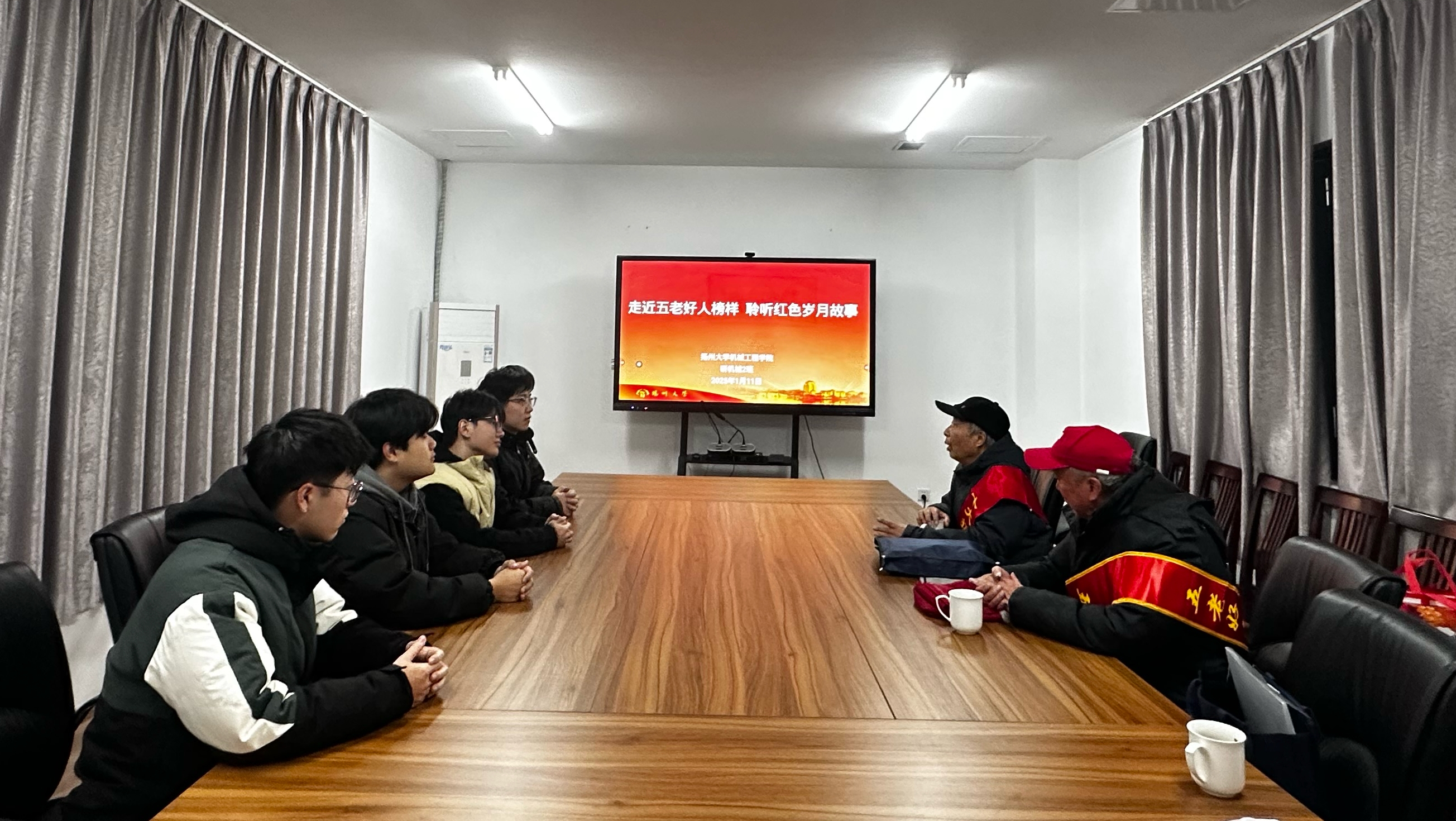 随后实践团同学们共同观看两位老同志的读懂中国红色人物视频,学习老同志们的精神。活动结束后,全体人员进行了合影留念。