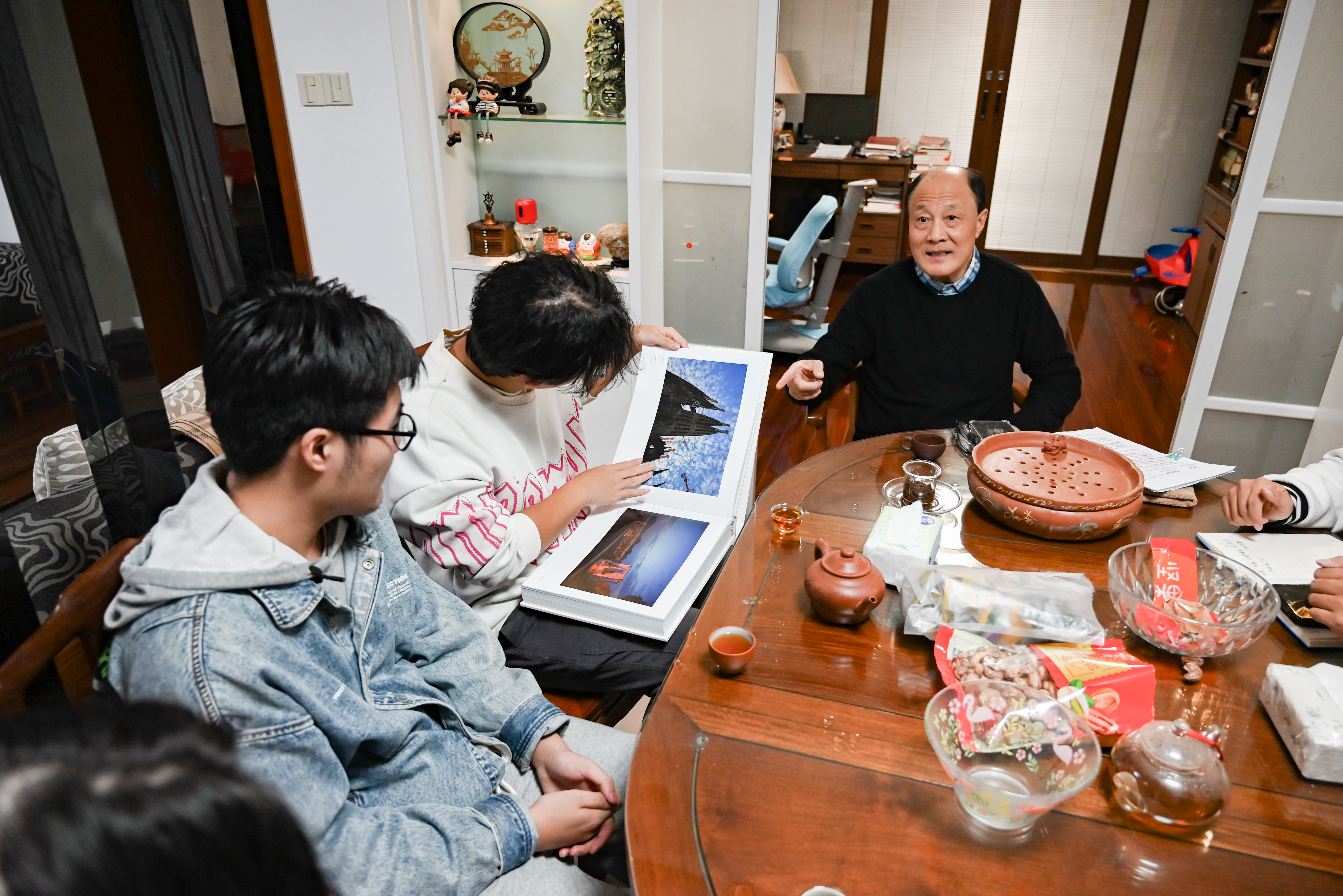 张老师追忆往昔执教生涯,围绕校友故事、歌曲鉴赏、学生成长规律、青年婚恋价值观等话题畅谈,从直面困境的坚韧到多元发展的智慧,再到对青年早担责任的期许,句句箴言饱含“以情育人”的赤诚。退休后,他始终牵挂学院与学生,常以自身阅历为青年教师传经送宝、为学子答疑解惑。