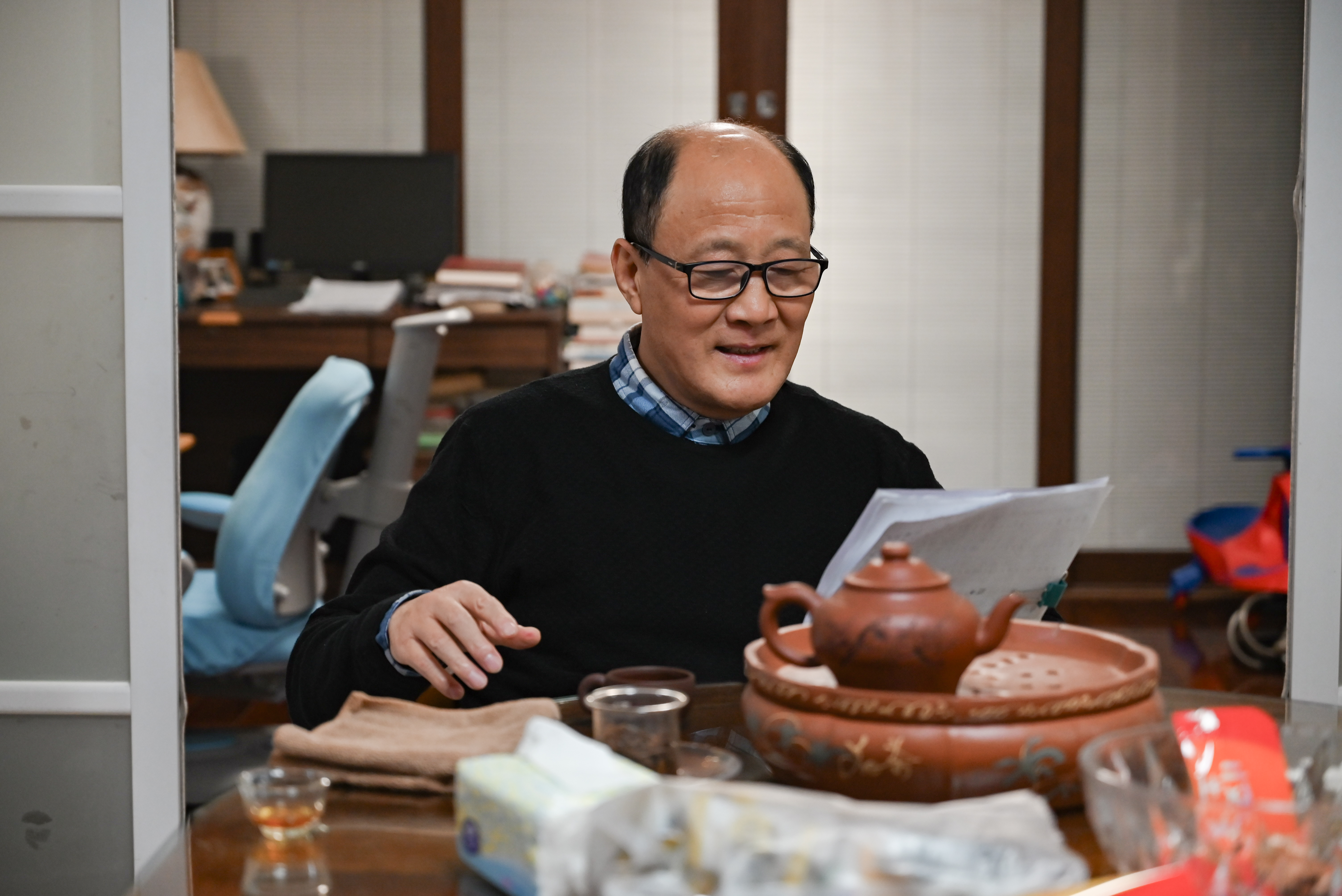 虽已退休多年,张卫宇老师依旧神采奕奕、谈吐恳切,举手投足间尽显对教育事业的执着与对后辈的关爱。交流中,贾老师悉心问询其身体近况与生活起居,介绍校园近期变化及学院关工委工作推进举措,衷心感谢他长期为学院建设倾心助力、为青年成长倾注心血。