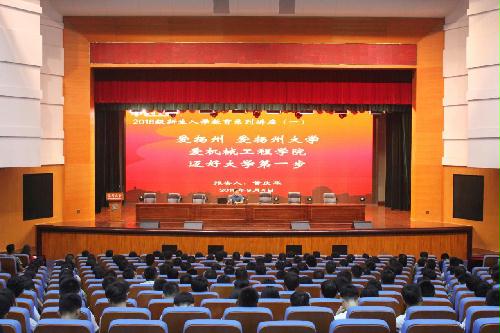9月4日晚,我院在文体馆三楼报告厅开展了以“爱扬州,爱扬州大学,爱机械工程学院,迈好大学第一步”为主题的新生入学讲座。主讲人是我院原党委书记黄庆华。 该入学讲座分为介绍扬州、介绍扬州大学、介绍机械工程学院三个部分。介绍扬州时,黄书记为同学们展现了一个人杰地灵、藏龙卧凤、人才辈出的扬州城。介绍扬州大学时,黄书记首先谈了扬大的长度,让同学们了解到扬大是一所具有悠长历史的大学;然后谈了扬大的宽度,扬大是学科门类齐全的综合类院校;最后谈了扬大的厚度和知名度,扬大是综合实力强的厚实的大学,并正在不断努力,争取进入全国高校前五十的行列。介绍我院时,黄书记着眼于我院学生的发展。历年来,我院的学生工作都是扬大所有学院的排头兵,黄书记希望新生们能认真完成军训任务,在以后的学习生活中脚踏实地、致知力行,努力为自己的梦想而奋斗,同时助力我院蒸蒸日上。 讲座的成功开展,让新生们更加了解扬州、扬大、机械工程学院,使新生们为扬大感到骄傲自豪,鼓励新生们发扬扬大的优良传统和作风,启发新生们好好珍惜大学的美好时光,在大学中实现自己的成长发展。