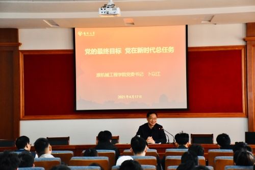 4月17日上午,我院原党委书记、关工委副主任、兼职组织员卜以江在力行楼401报告厅为入党积极分子们作了题为“党的最终目标 党在新时代总任务”的理论宣讲报告。院党委副书记、关工委主任张平主持报告。