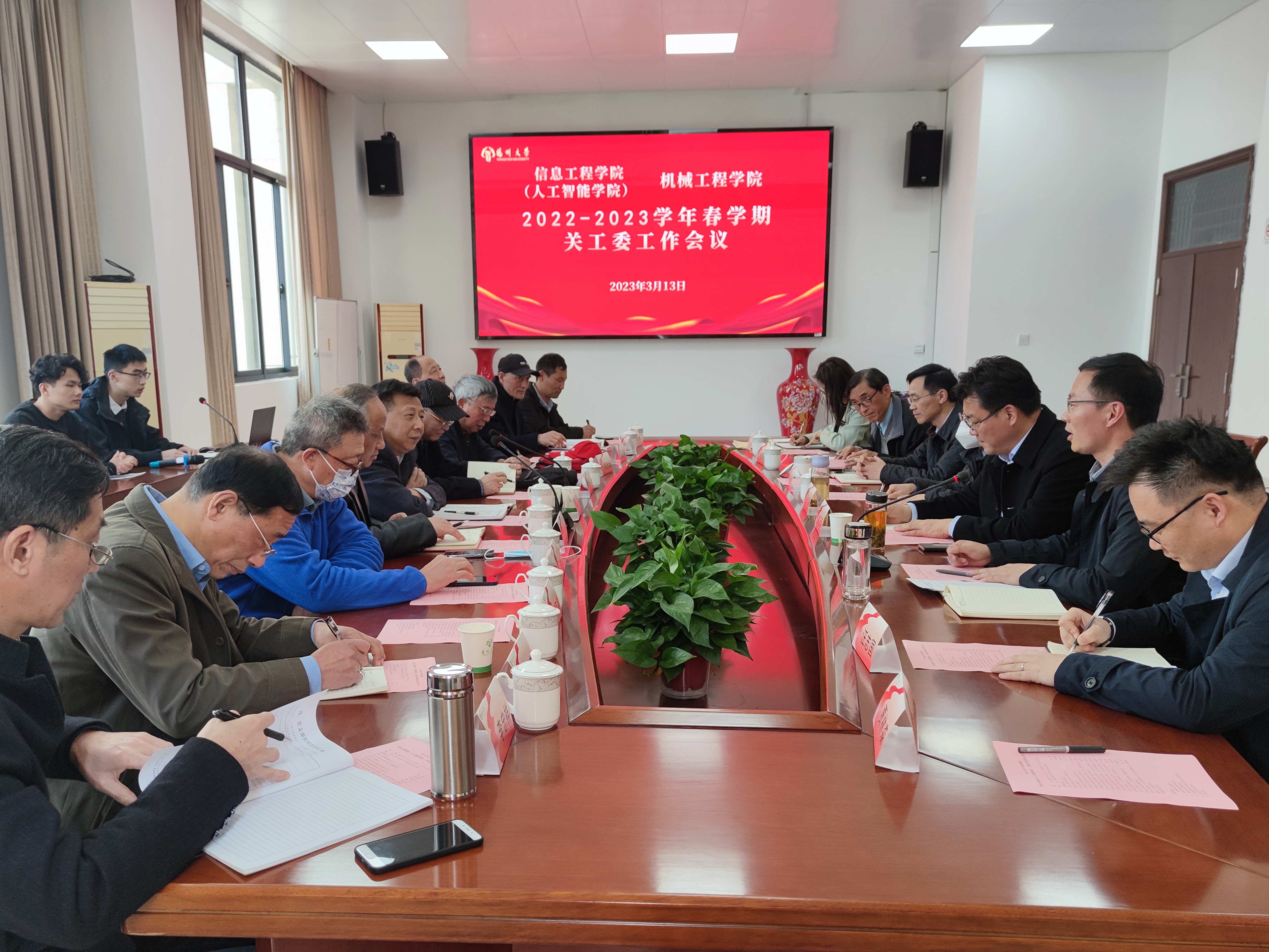 3月13日下午,我院与信息工程学院(人工智能学院)在力行楼s318会议室联合召开2022-2023学年春学期关工委工作会议。校关工委常务副主任洪涛,校关工委办公室主任、副秘书长刘汉柏,校关工委顾问刘方云,江阳路北校区离退休党总支书记周详、各支部书记及委员代表,信息工程学院(人工智能学院)党委书记吕红梅,我院党委书记尤玉军,信息学院党委副书记崔益军,我院党委副书记毕亮,学院关工委委员代表、共建班学生代表参加会议。我院党委副书记毕亮主持会议。