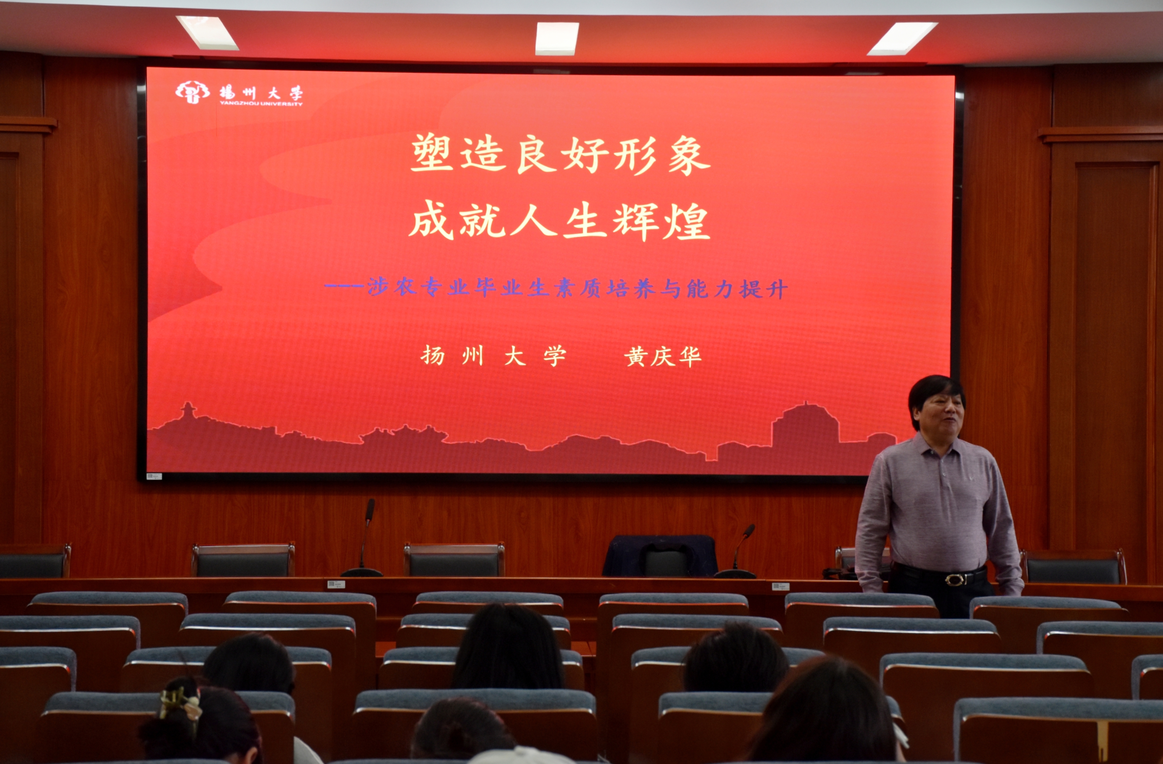 黄庆华书记将本次讲座的主旨落脚在,涉农专业学子如何通过塑造良好形象走好从校园到工作岗位的第一步。黄书记解释,公共关系学中的“形象”是知名度+美誉度,即广大社会公众对主体熟悉、了解、信任和赞誉的程度。黄书记建议同学们在对自己进行形象定位时,应先提升自身美誉度后逐步提升知名度,从而塑造良好的形象。