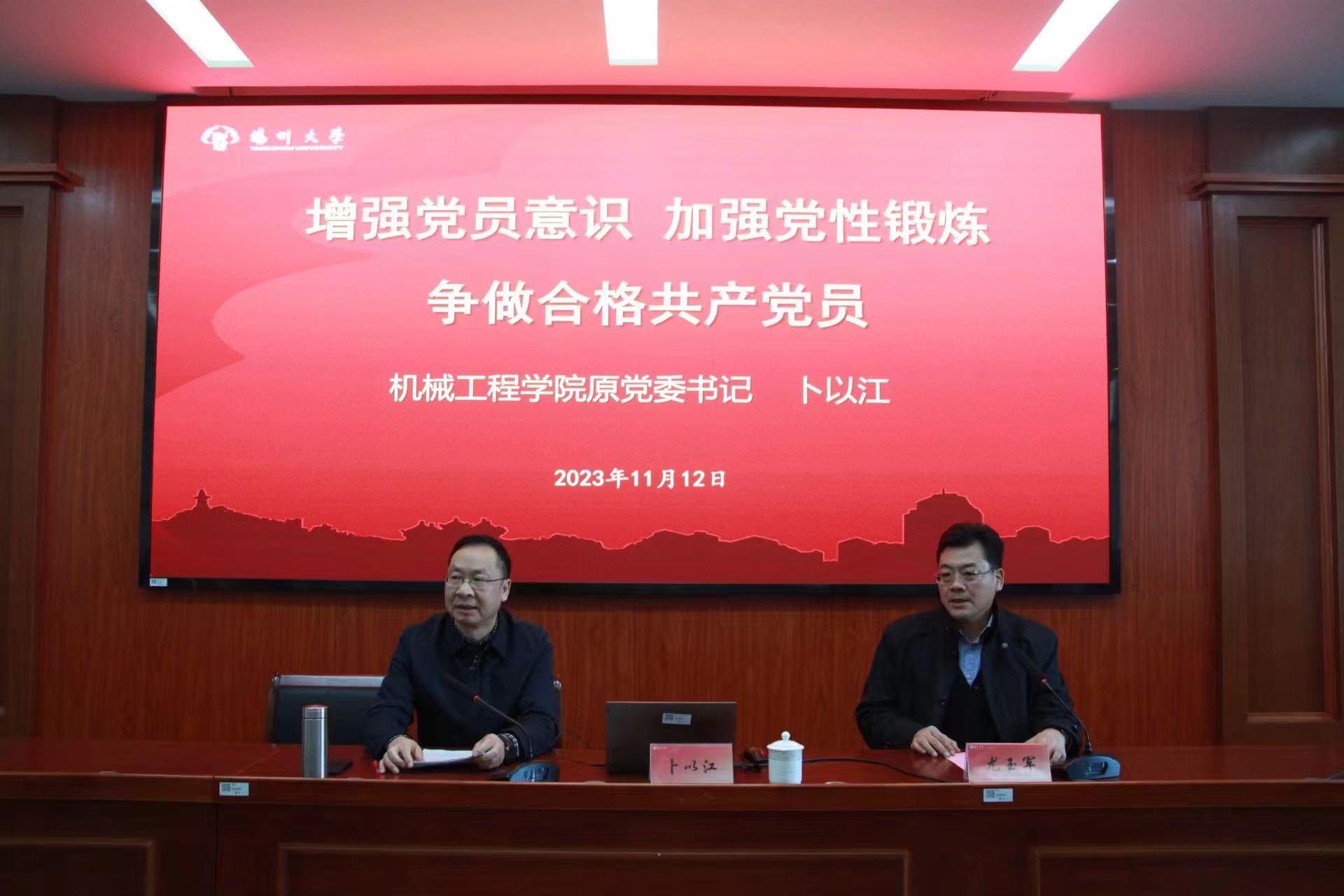 11月12日下午,我院与力行楼401报告厅开展“增强党员意识 加强党性锻炼 争做合格共产党员”的讲座。学院邀请院原党委书记、院关工委副主任、兼职组织员、校关工委党建辅导组成员卜以江主讲。学院党委书记尤玉军主持讲座,我院发展对象、预备党员等50余名同学参加讲座。