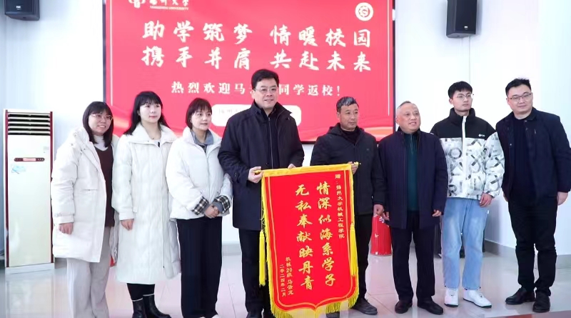 2月25日上午,我院举行学生马云龙康复返校欢迎活动。学院党委书记尤玉军、党委副书记黄文婷、朗月学生社区党工委副书记,校关工委办公室主任兼副秘书长刘汉柏、扬州大学学生资助中心副主任马颖、马云龙同学和他的父亲,全体辅导员老师参加此次活动。