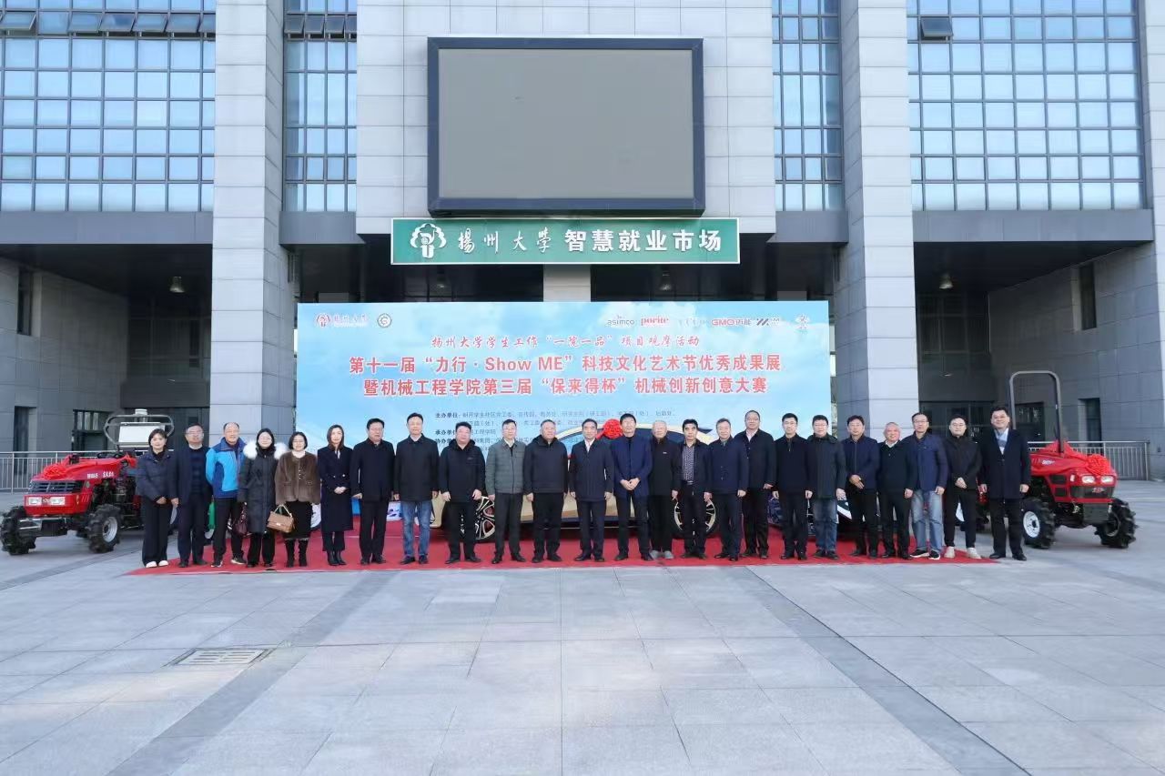 12月8日下午,我院于扬子津校区文体馆举办了扬州大学学生工作"一院一品"项目观摩活动(机械工程学院第三届“保来得杯”机械创新创意大赛)暨第十一届“力行·Show ME”科技文化艺术节闭幕式。出席本次活动的领导嘉宾有:中城建第十三工程局有限公司总经理陆正华先生,江苏润阳钢结构有限公司总经理陈德先生,亚新科集团人力资源部部长张军先生,五亭桥缸套有限公司质量总监许伟先生,江苏迈能高科技有限公司人力资源总监李爱梅女士,扬州保来得科技实业有限公司综合管理部总务课高级经理葛秋丽女士,智己汽车科技有限公司部门经理徐岭先生,扬州市德瑞气体有限公司总经理翁亚林先生,校党委副书记周如军老师,校党委常委、宣传部部长张信华老师,校党委办公室(保密办公室)主任王军老师,校长办公室主任龚俊杰老师,校党委研究生工作部部长吴刚老师,校党委学生工作部部长、学生工作处处长施林峰老师,校后勤保障处处长朱春生老师,校党委保卫部部长、保卫处处长、人民武装部部长姚永明老师,校朗月学生社区党工委副书记、关工委办公室主任、副秘书长刘汉柏老师,校团委书记陈佩沛老师,校就业指导中心主任陈轶群老师,校教育教学评估中心主任郑刚老师,江阳路北校区离退休党总支书记周详老师,江阳路北校区离退休第一党支部委员张卫宇老师,出席活动的还有:我院全体院领导、我院离退休老教师、各系部主任、班主任、辅导员和师生代表。