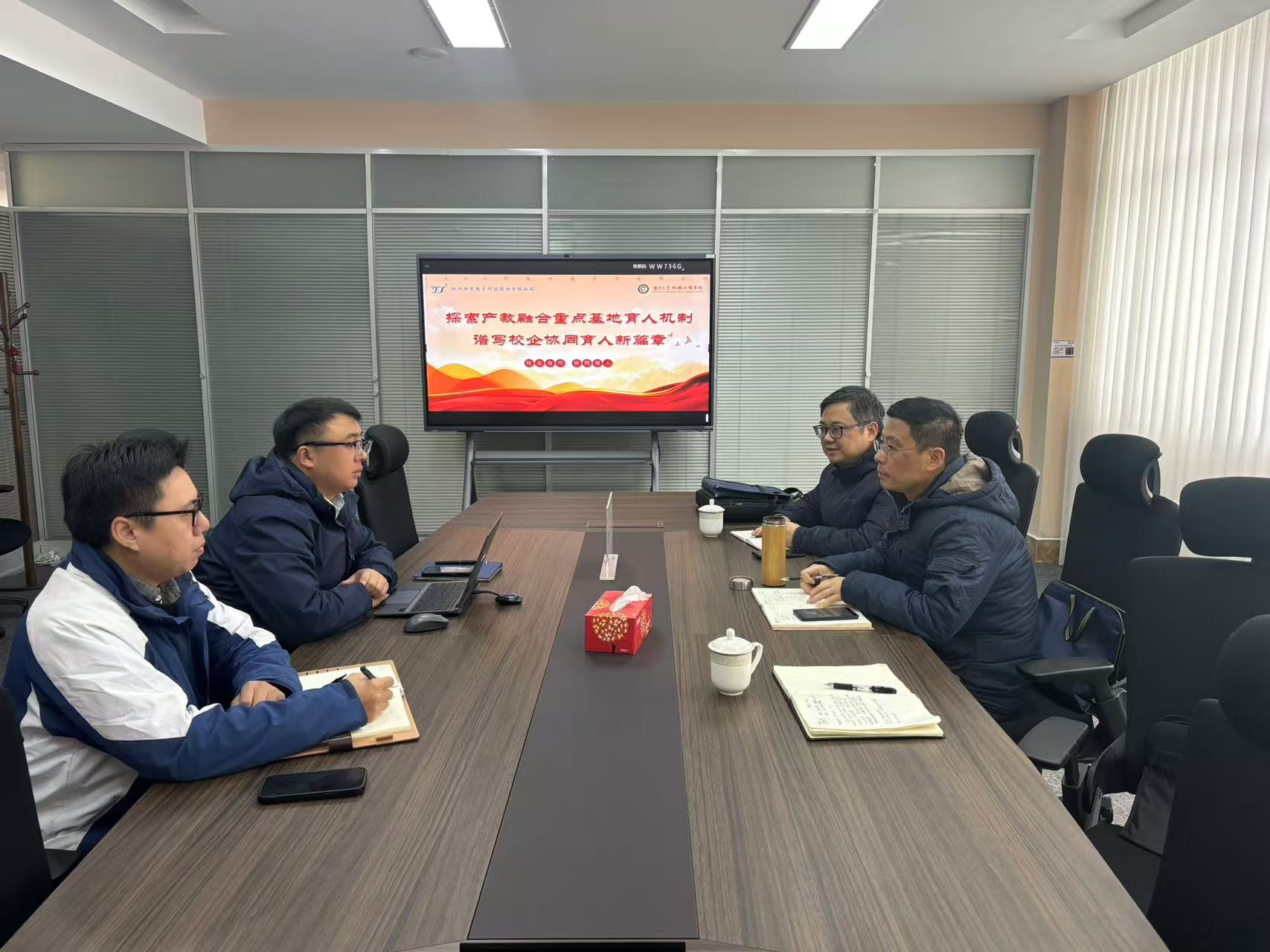 双方就产教融合重点基地的扬杰班培养模式进行了深入的讨论和交流,包括学生选拔、课程设置、教学模式、组织管理机制等一系举措,为下一步推进学院与企业部门进行技术、工艺、设备的全方位对接,落实项目化产教融合型人才培养确定了方向。