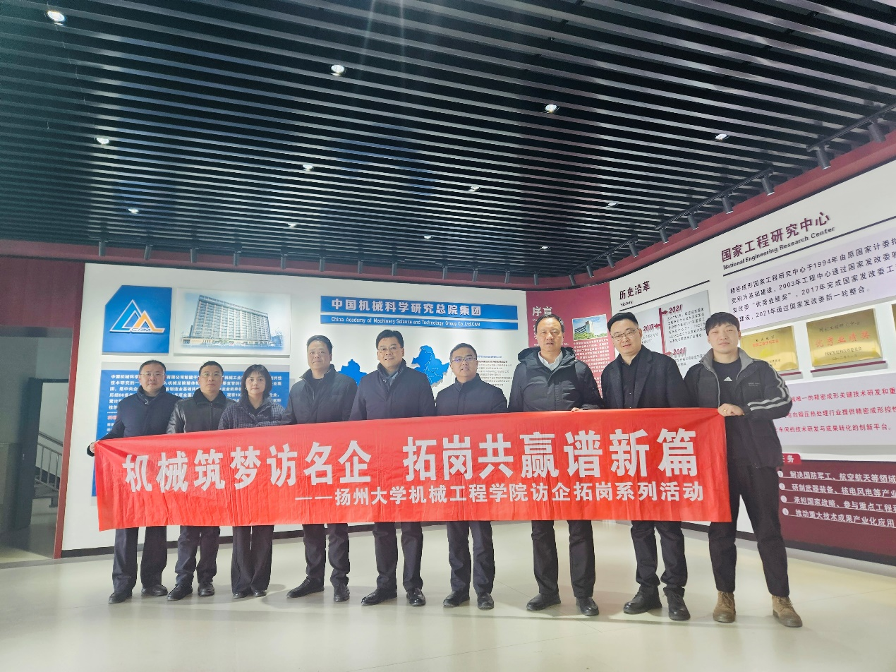 1月15日下午,我院党委书记尤玉军、院长张超一行前往中国机械科学研究总院江苏分院有限公司开展校企合作,访企拓岗相关活动。