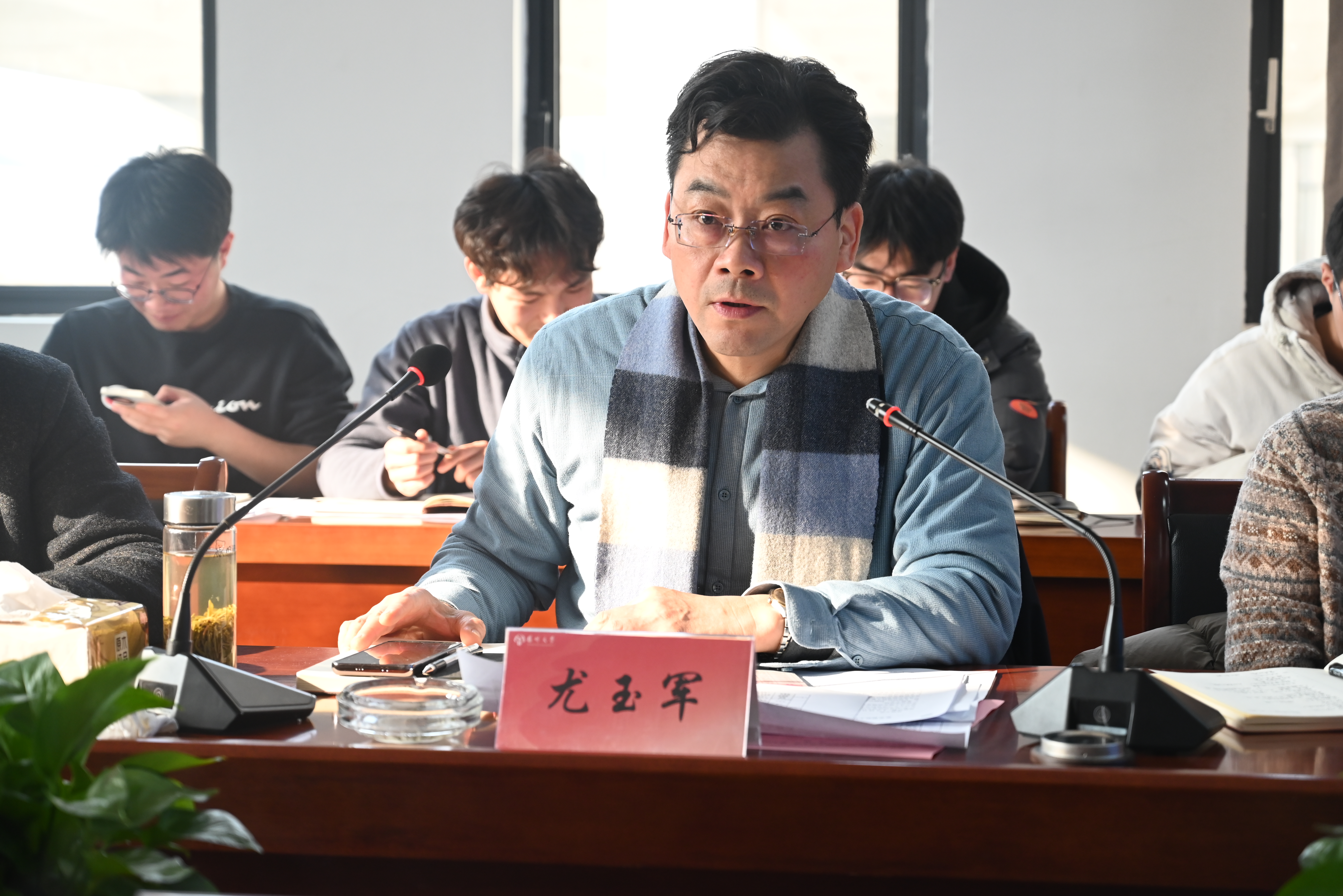 首先,郭敏老师对24级新生学生工作情况进行汇报,马迎光老师、张亦旸老师进行了班主任经验交流,汪志国老师对近期重点工作进行了布置,尤玉军书记对班主任以及班主任助理的前期工作表示感谢和祝贺。
