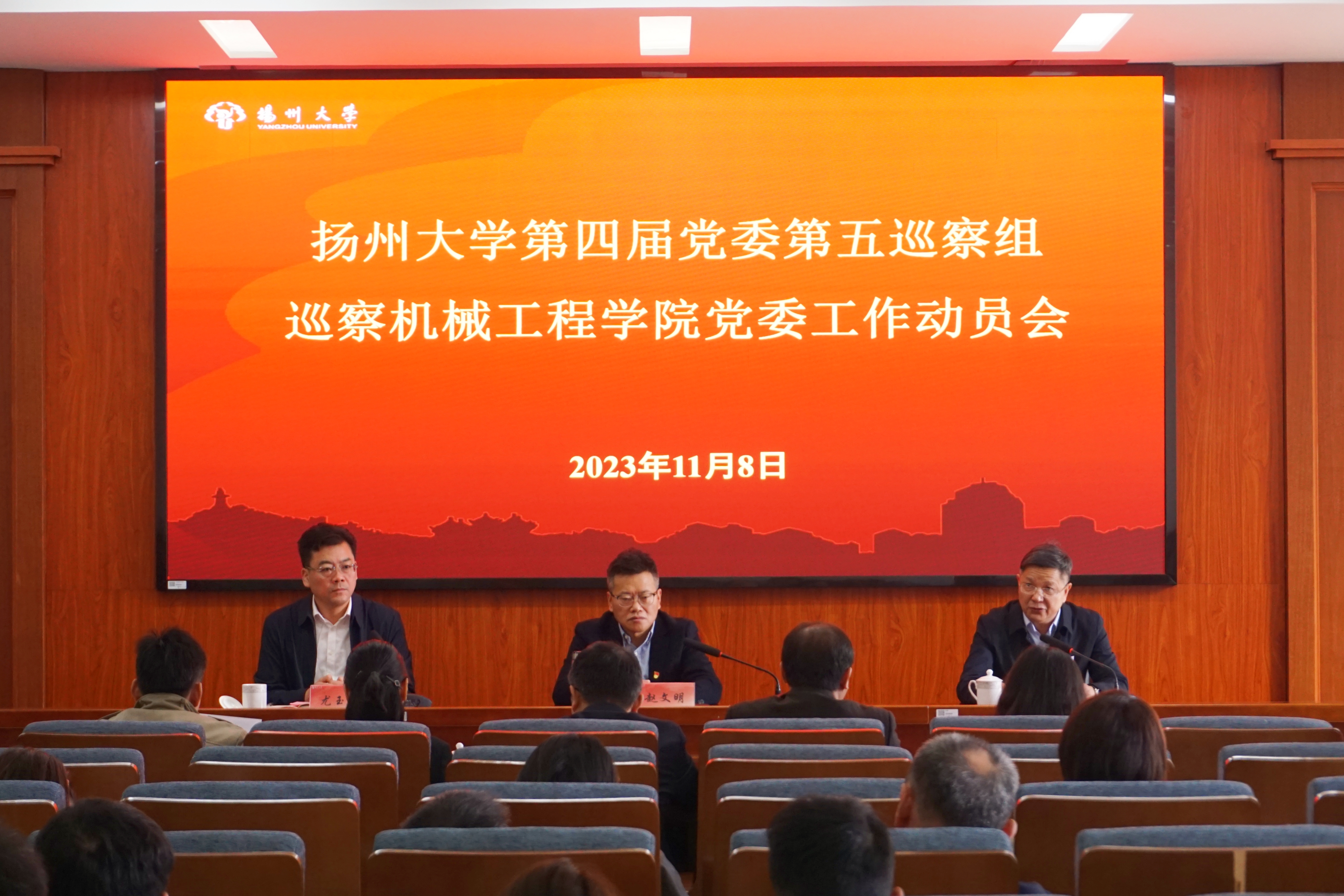 扬州大学第四届党委第五巡察组全体成员,机械工程学院全体领导班子成员、科级干部、民主党派教师代表、专业负责人、系主任、党支部书记、教职工代表参加了本次会议。