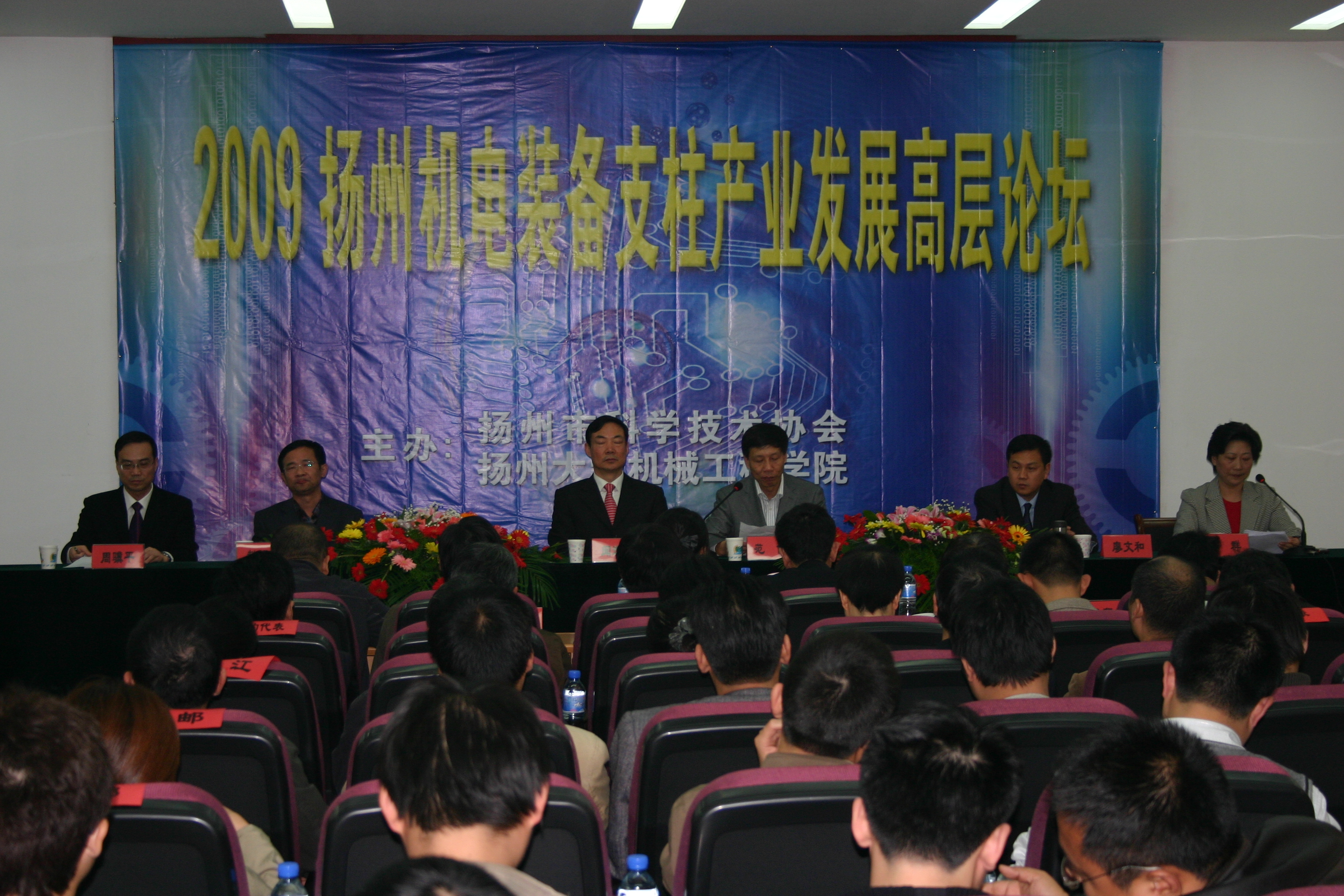 11月8日下午,“2009扬州机电装备支柱产业发展高层论坛”在我院举行。此次论坛由扬州市科学技术协会和我院共同举办。来自省内外的专家、扬州市政府职能部门的领导和扬州企业界100多名代表齐聚一堂,一起分析在当今世界金融危机的情况下,扬州市机电装备支柱产业发展出现的新情况、新挑战,共同探索扬州市机电装备支柱产业发展的新理念、新举措。中科院沈阳自动化研究所赵明扬研究员和南京航空航天大学廖文和教授应邀在论坛上作专题学术报告,为企业发展提供理论指导。扬州市副市长闻道才、扬州大学副校长范建到会祝贺并发表讲话。