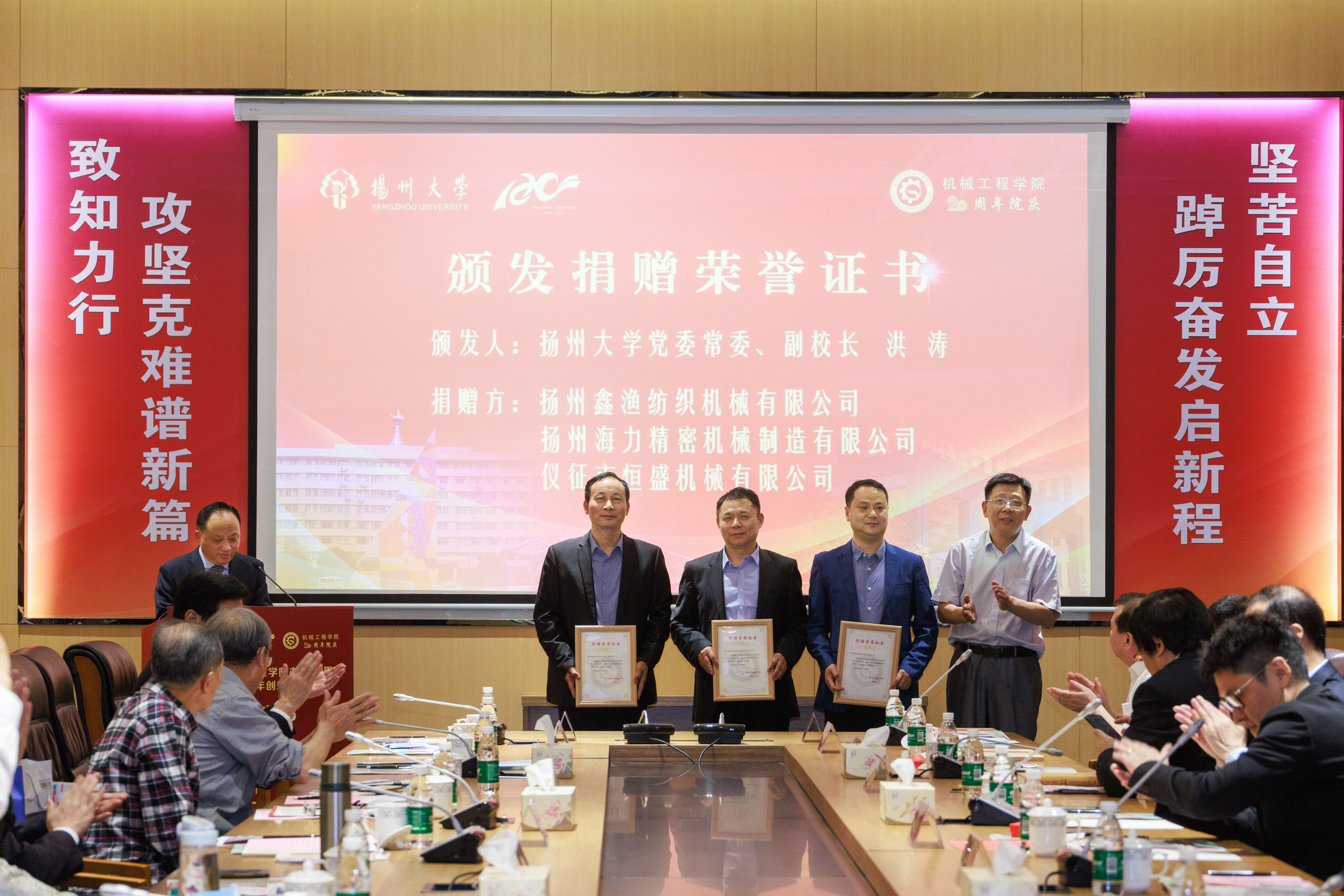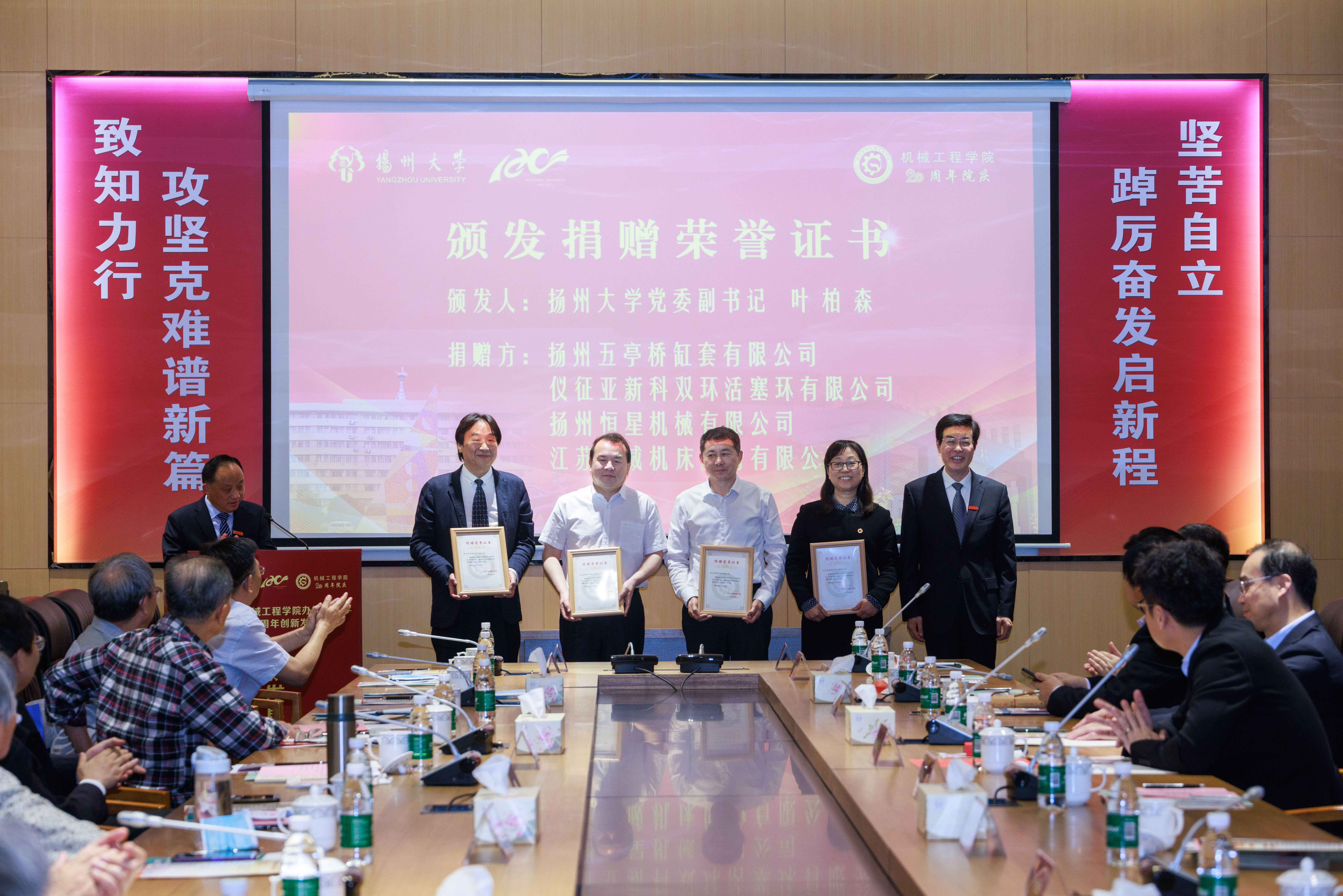 校党委副书记叶柏森、副校长陈国宏、副校长洪涛分别为11家企业领导颁发捐赠荣誉证书。学院与9家企业领导签订合作协议。