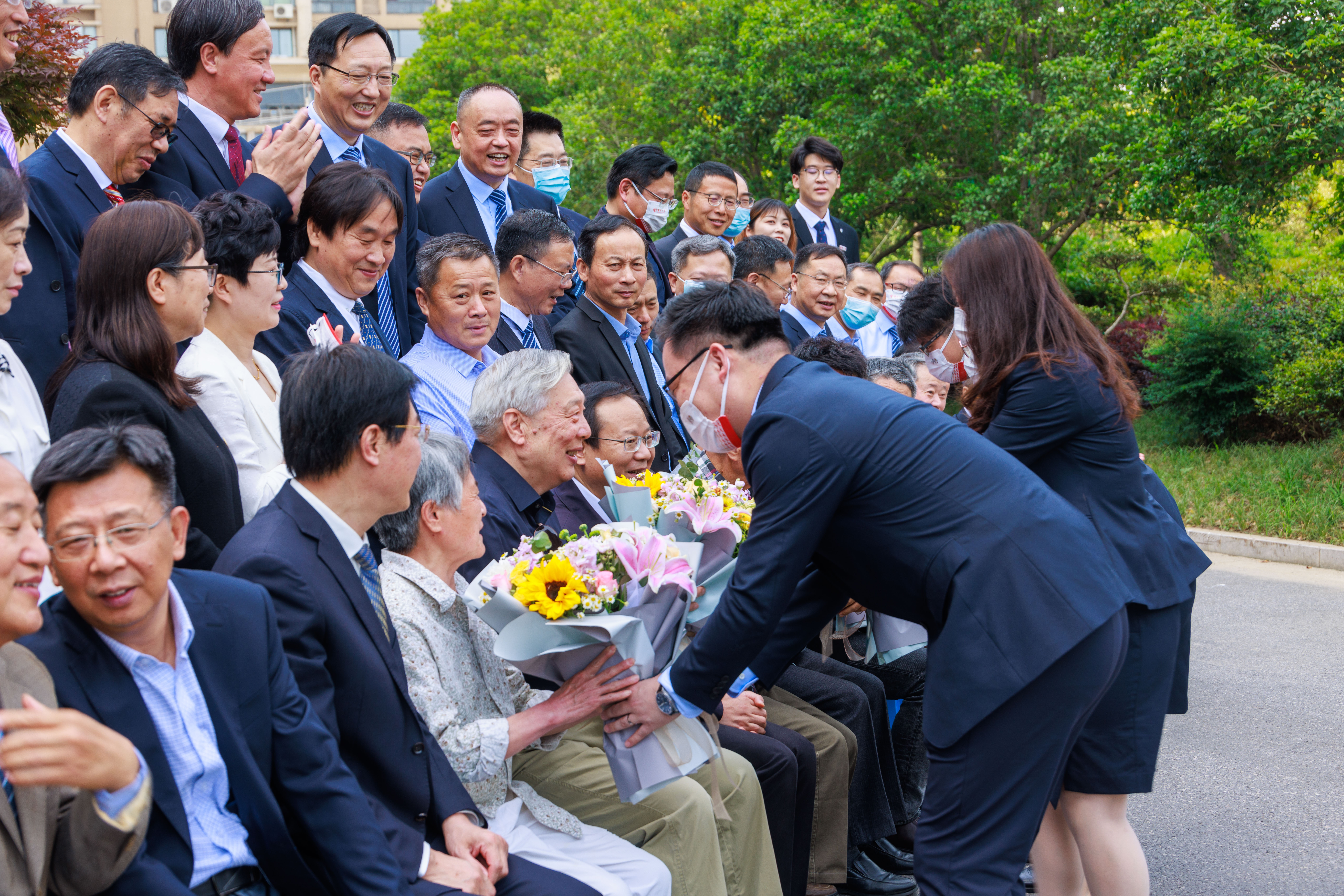 我院青年教师向老教师代表献上鲜花,对他们为学院人才培养、科学研究所做出的贡献表示深深的敬意。