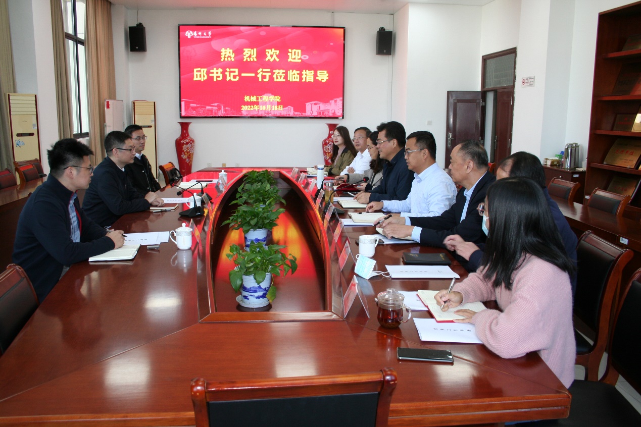 院党委尤玉军书记对邱书记一行莅临指导表示欢迎,并表示一定会认真学习宣传贯彻校第四次党大会精神,团结带领全院师生员工,只争朝夕、不负韶华,撸起袖子加油干,以更好的成绩献礼党的二十大的胜利召开!