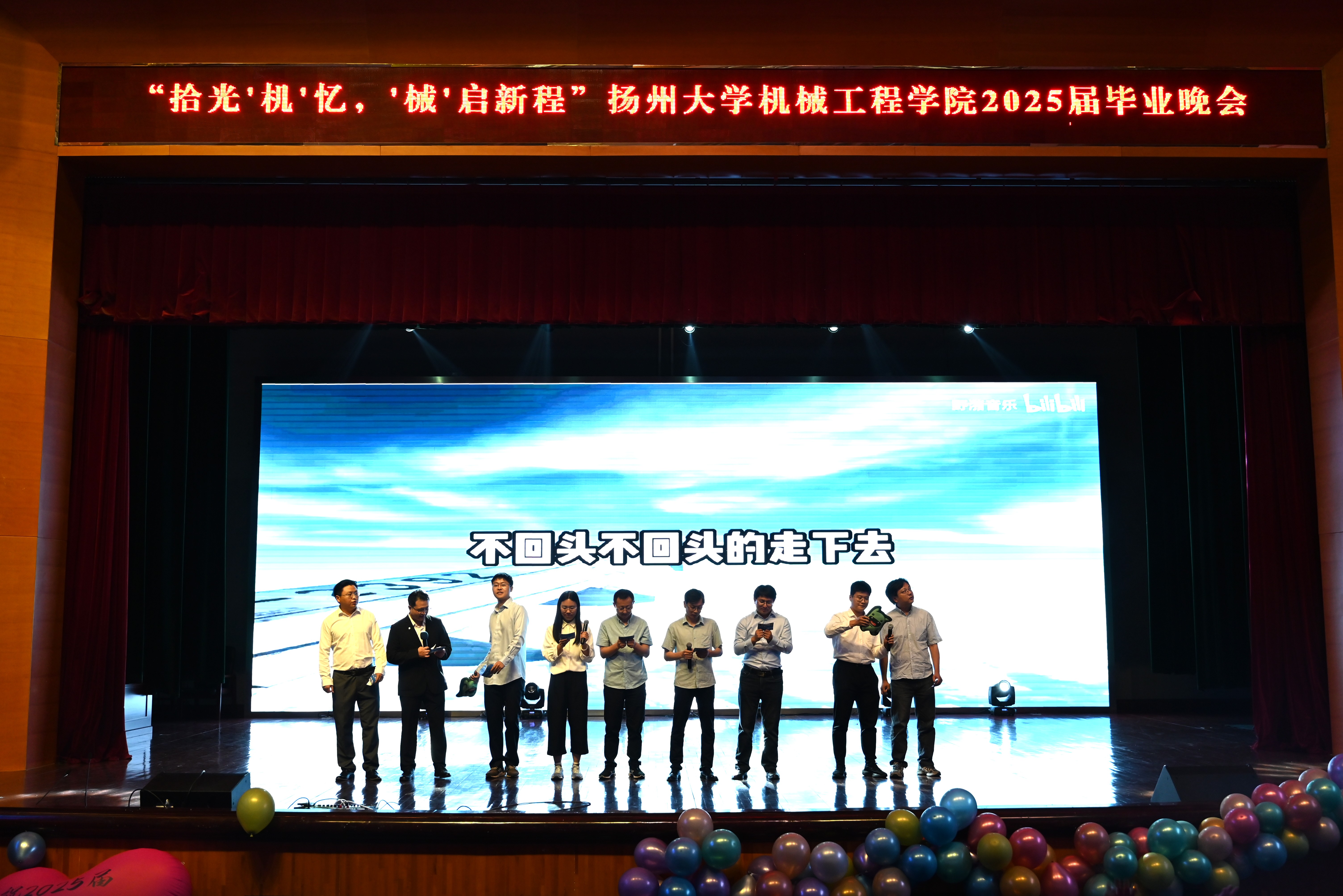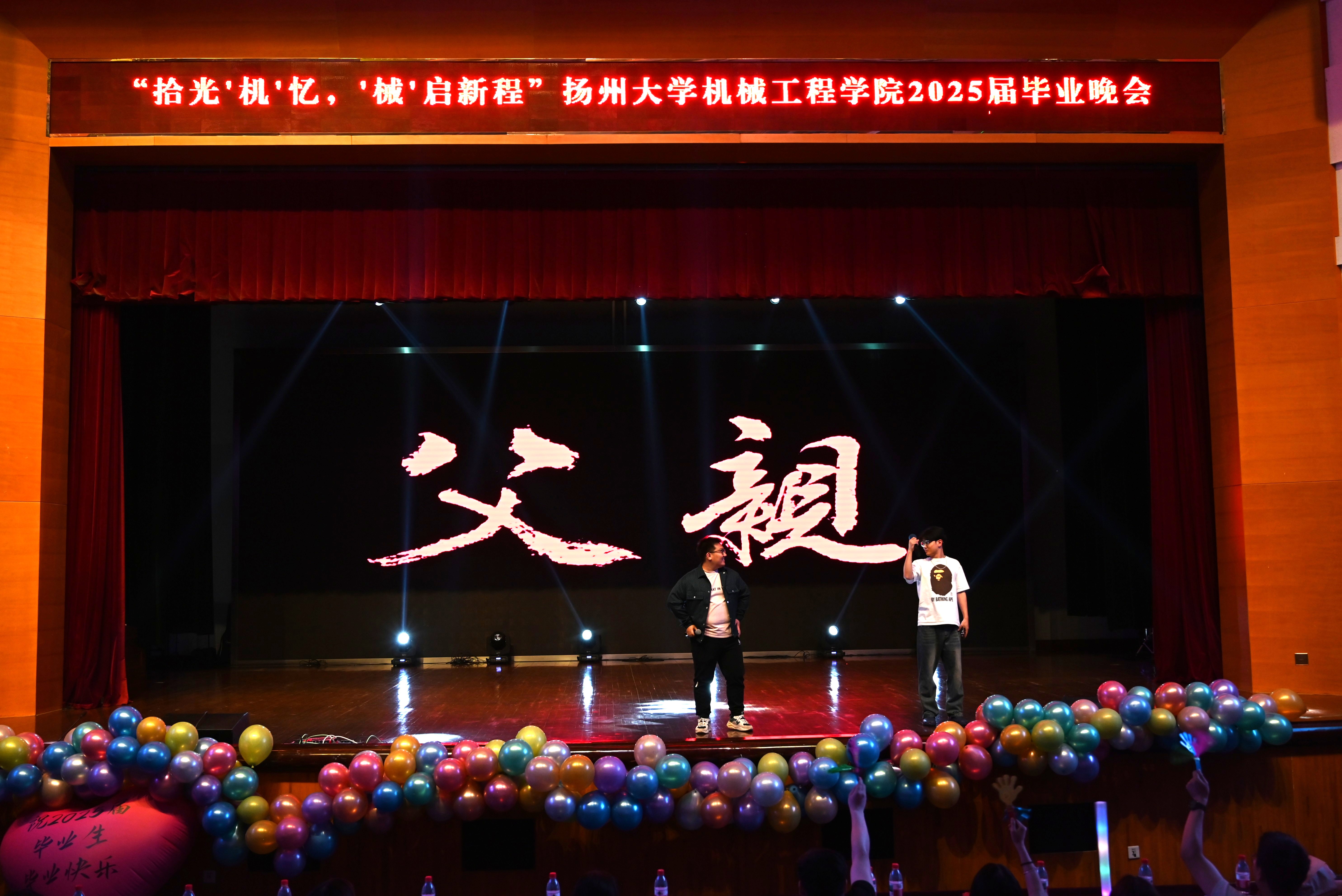 6月4日,我院于扬子津文体馆三楼剧场举办了“拾光‘机’忆,‘械’启新程”——机械工程学院2025届毕业晚会。院党委副书记黄文婷老师、江阳路北校区离退休第一党支部委员 结对共建老同志 机械2103班兼职班主任张卫宇老师出席晚会,参加晚会的还有2025届毕业班全体班主任、全体辅导员。