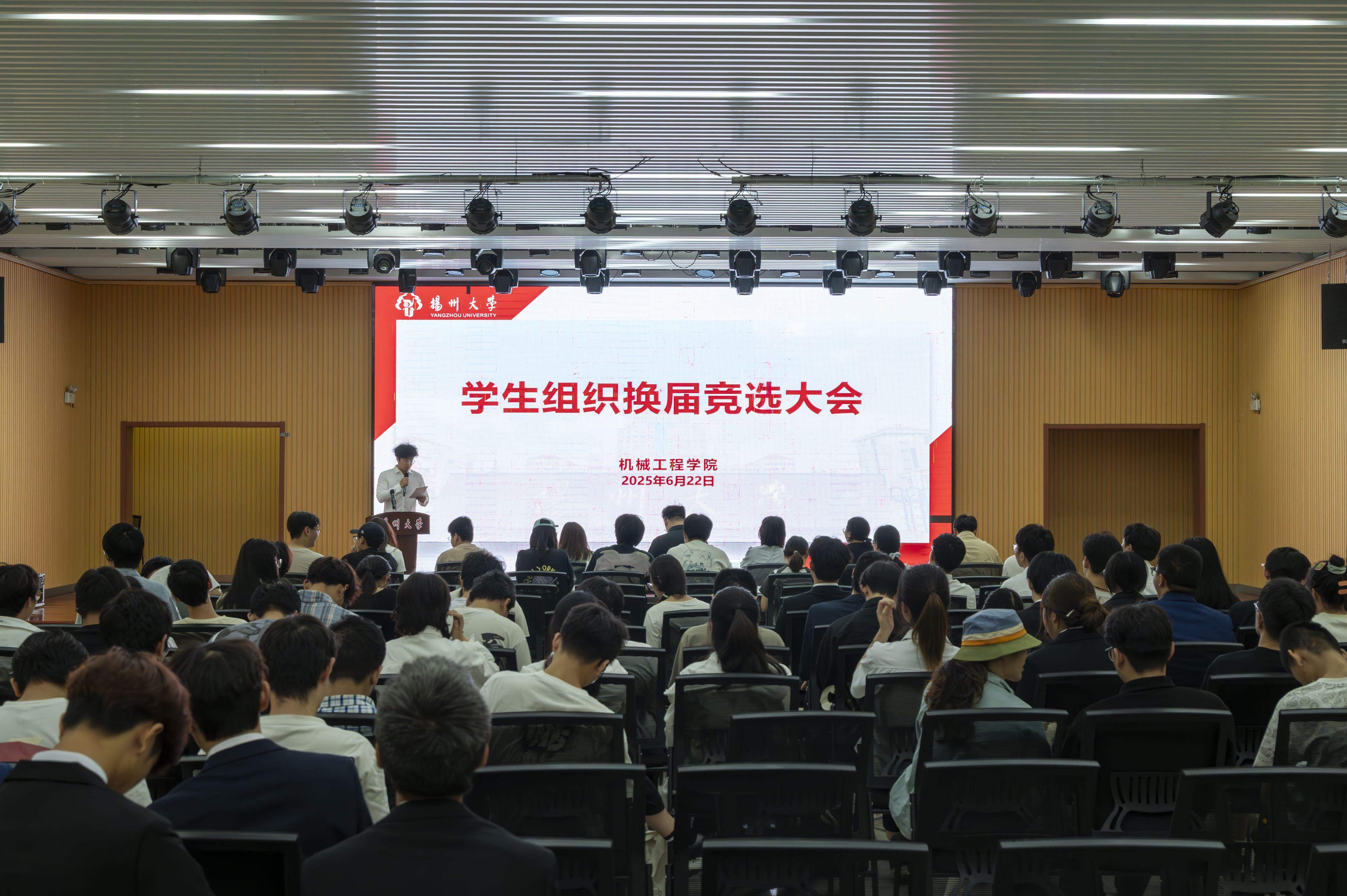 6月22日下午,我院在文体馆一楼报告厅召开了2024-2025学年学生组织换届竞选大会。学院全体辅导员老师、各学生组织现任主席团成员、新一届学生组织主席团候选人及各班级班干部参加了本次会议。