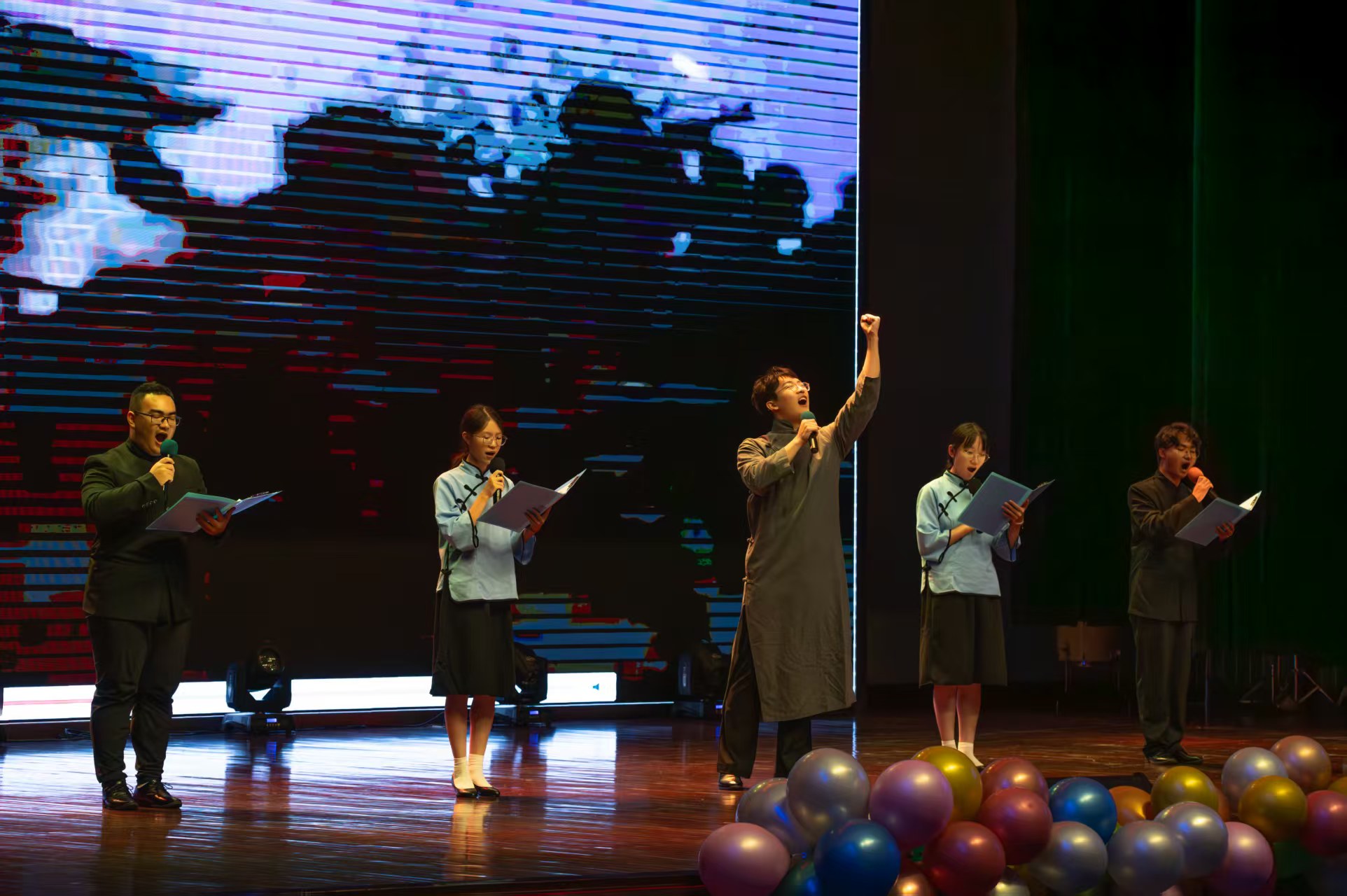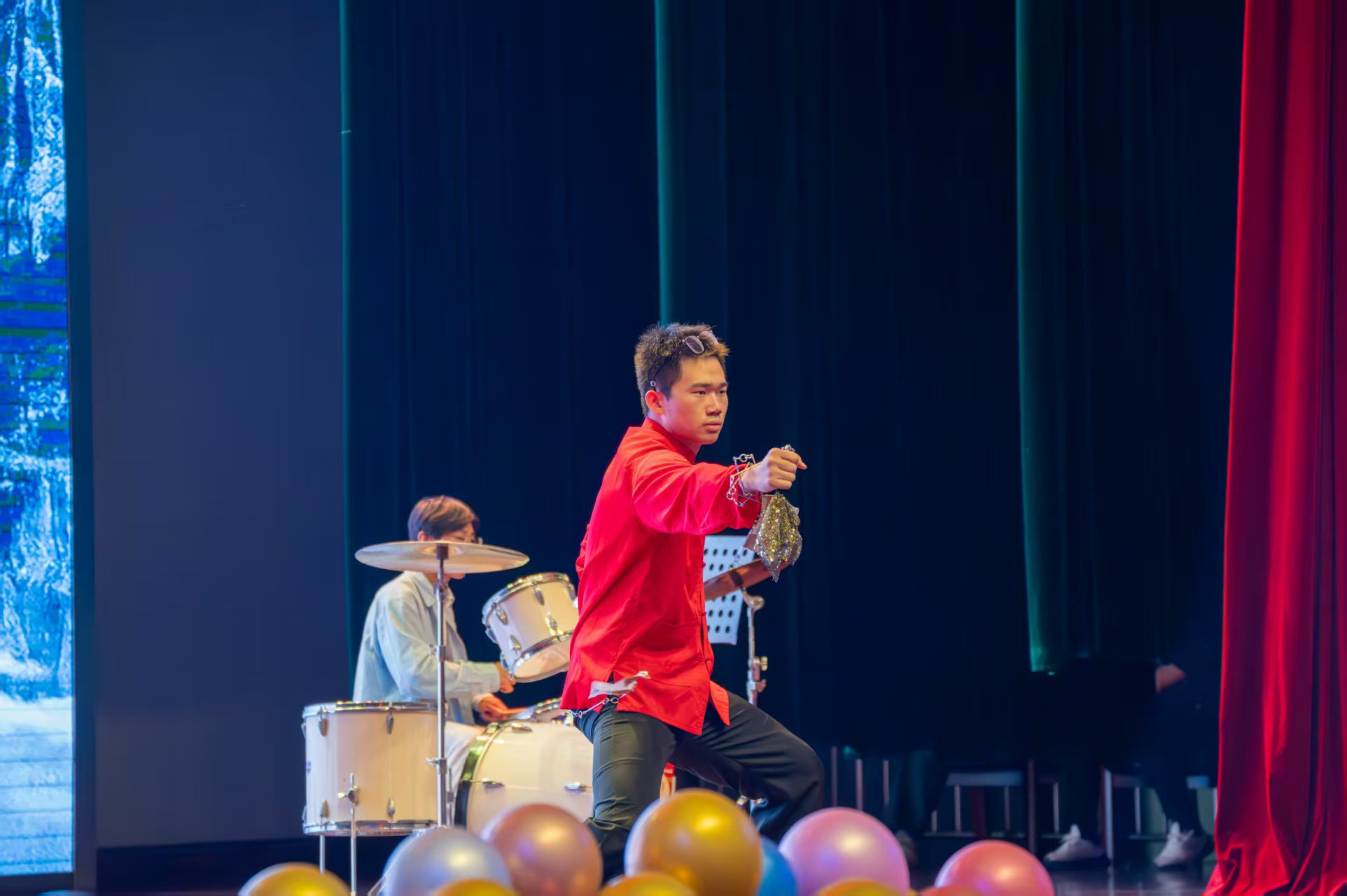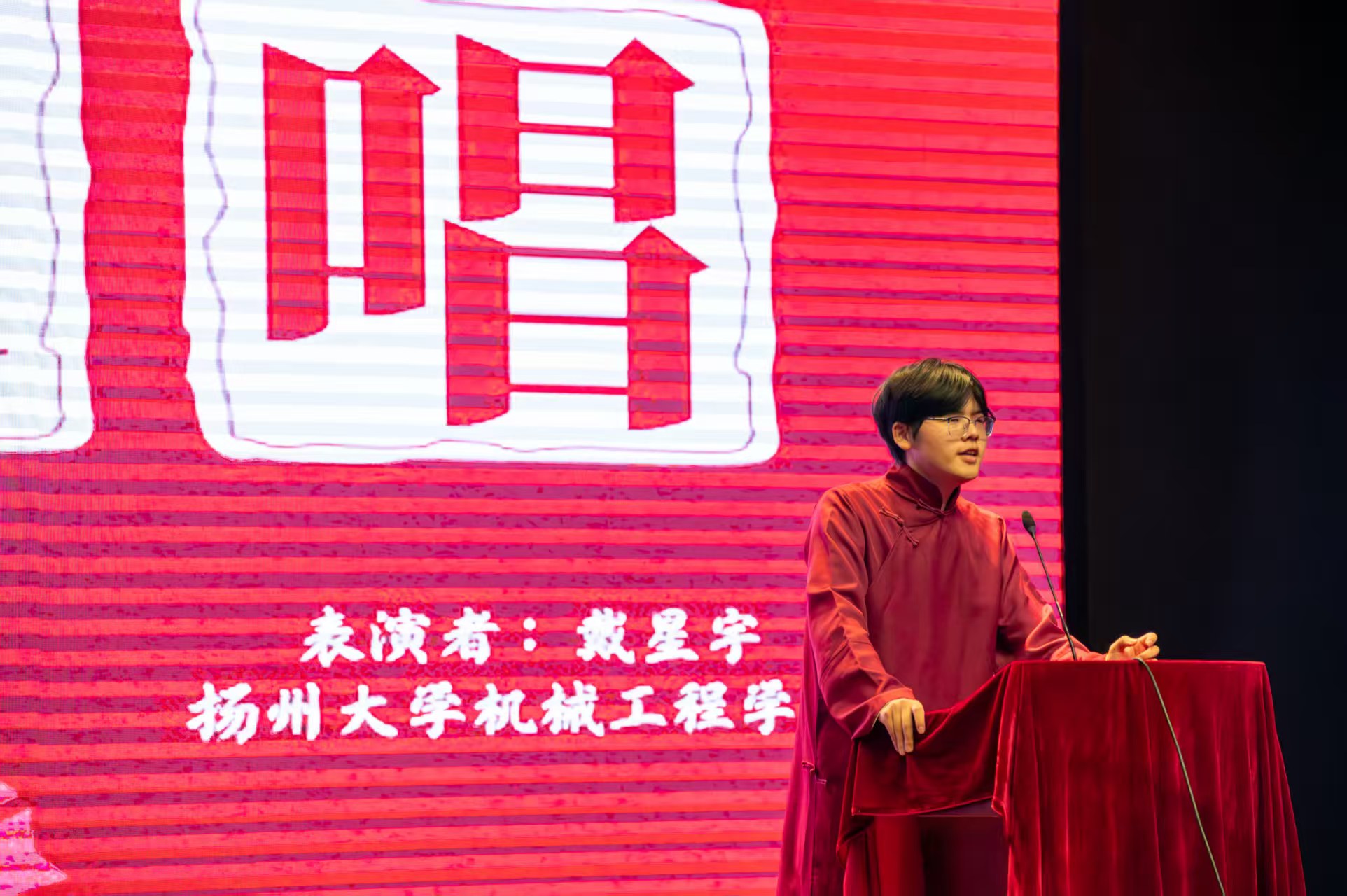 第二篇章“韶华不负,艺启未来”里,沈雲泽的舞蹈《只因你太美》动感十足,尽显青春活力;倪小天、陈知远合唱的《意外》用深情嗓音演绎青春邂逅;胡禹锡、陈知远带来的“武术+架子鼓”《九节鞭》实现刚柔与动感的跨界融合,视觉与听觉的双重冲击令观众赞叹不已;潘文杰、卢艺等同学的朗诵《吹号者》声情并茂,传递信念力量;戴星宇的单口相声《说学逗唱》以妙语连珠的表演展现传统曲艺魅力;许平豪、杨润苏等同学的舞蹈《被单舞》创意十足,彰显机械学子的奇思与风采。