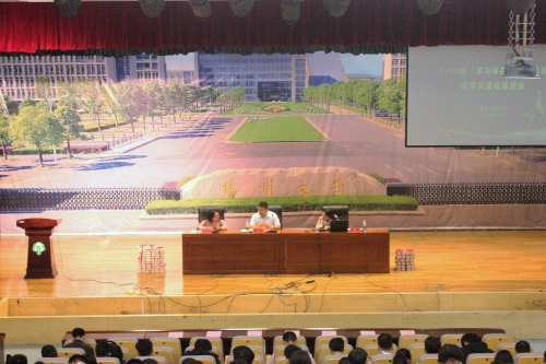 5月19日,我院于昭文馆报告厅举行了2018级“学习标兵”表彰大会暨学风建设推进大会,院党委副书记虞强老师、2018级辅导员苏慧老师出席了本次会议。院团委书记徐香翠老师主持大会。