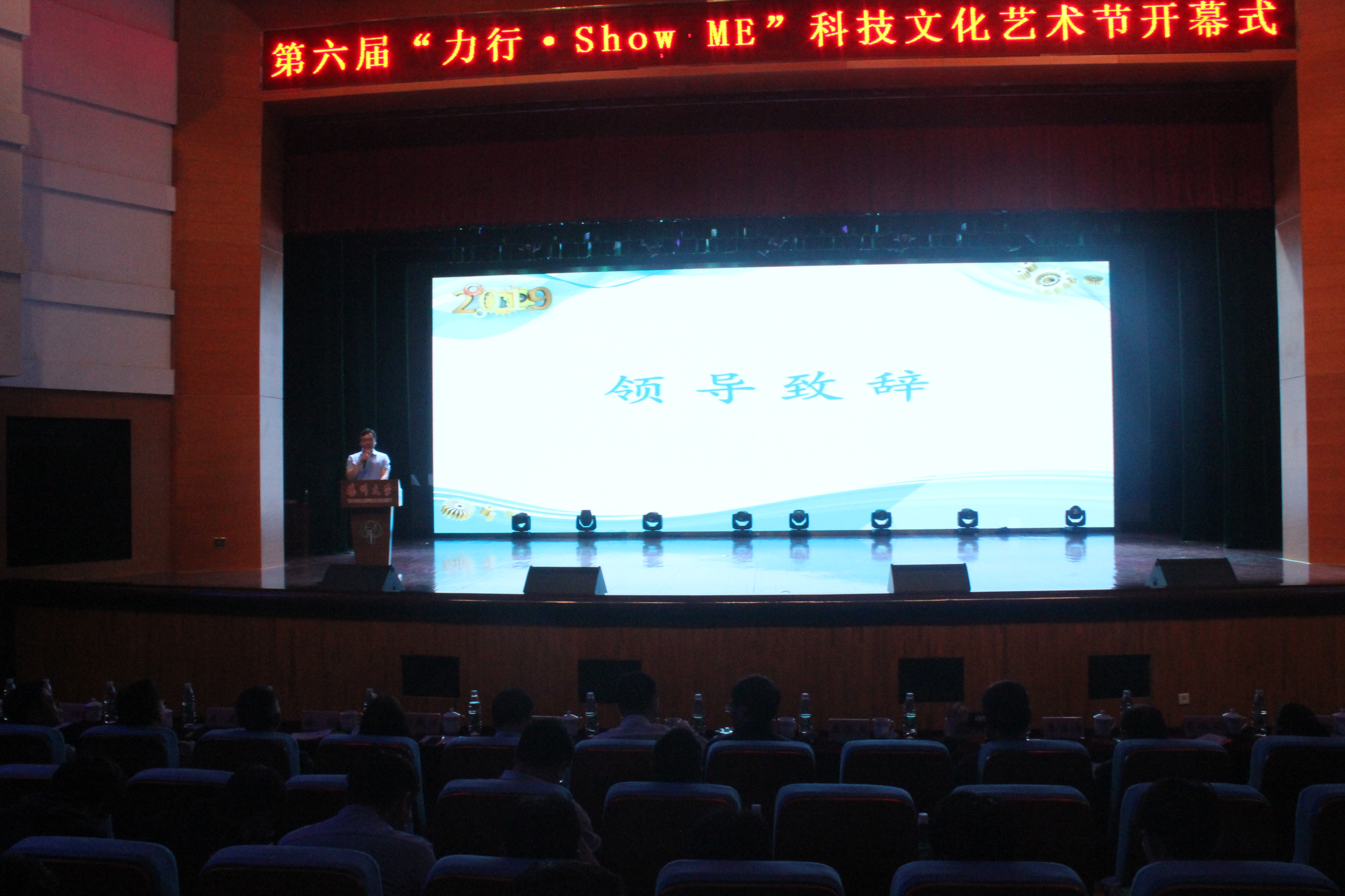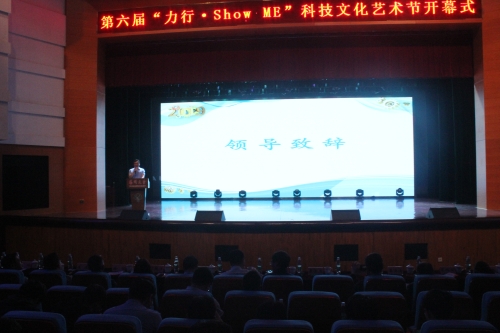 5月22日晚,我院于文体馆三楼小剧场举行了第六届“力行· Show ME”科技文化艺术节开幕式。校党委常委、宣传部部长张信华老师,校研究生工作部副部长高明国老师、校团委副书记陈佩沛老师、扬州保来得科技实业有限公司副董事长徐同先生、扬州保来得科技实业有限公司总务课经理葛秋丽女士、扬州道爵新能源发展有限公司项目部部长唐磊先生、江苏宏昌天马物流装备有限公司企管部副部长朱燕勤女士、扬州维邦园林机械有限公司、人力资源部部长杨新建先生、院党委书记卜以江老师、院长龚俊杰老师、副院长秦永法老师、新疆内派教师王敏奇老师、机电系主任宋爱平老师、车辆系主任沈辉老师、农机系副主任张琦老师、材料系主任姜世杭老师、工业设计系主任张军老师、院办主任陈加荣主任、院实训中心主任金亦富老师出席了本次活动。
