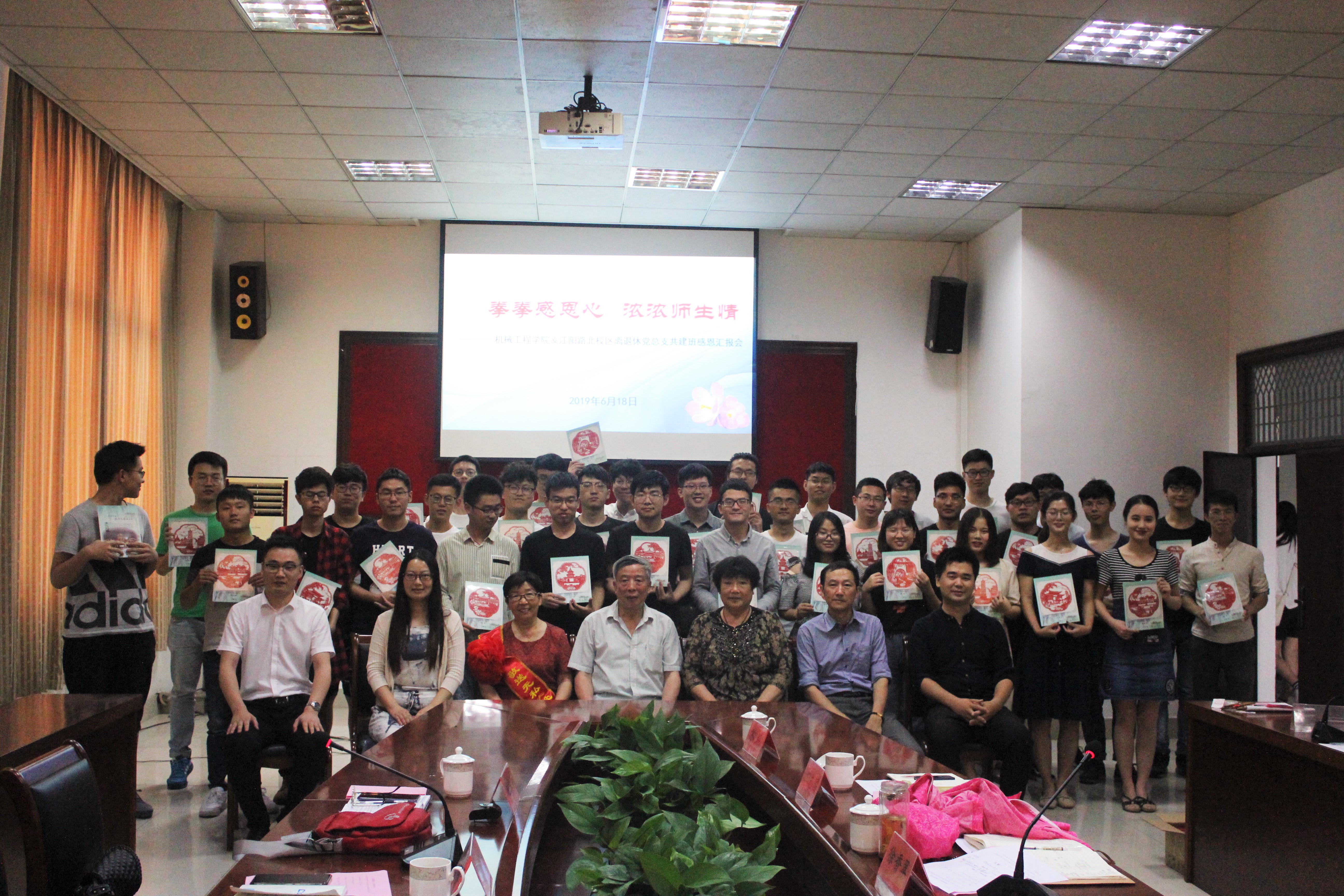 6月18日,我院于力行楼S318会议室开展了与江阳路北校区离退休党总支共建班感恩汇报会活动。出席本次汇报会的有校关工委副秘书长兼办公室副主任刘方云老师、江阳路北校区离退休党总支赵玉华书记、共建班级机械1502班结对老师何皖陵老师、16级辅导员汪志国老师、17级辅导员徐佳老师、18辅导员苏慧老师、研究生辅导员杨超老师、机制1502班班主任沈茂松老师以及机械1502班全体同学。活动由院团委书记徐香翠老师进行主持。