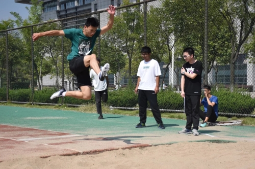 机械学子矫健的身姿在红色助跑赛道的映衬下更显光彩,他们奋力一跃时的眼神透露出坚定。