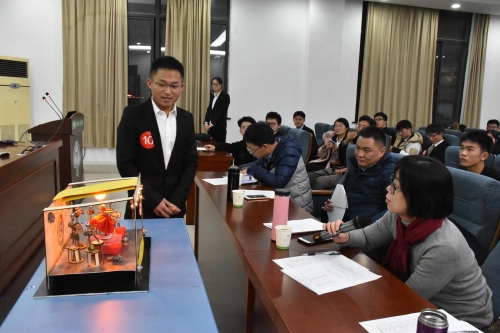 1211日,我院于力行楼401报告厅举办了第五届机械废旧品创意制作大赛决赛。扬州市机械工程学会秘书长陶晔、我院党委副书记张平、机电工程系副主任朱林、戴敏老师、院团委书记徐香翠担任大赛评委。