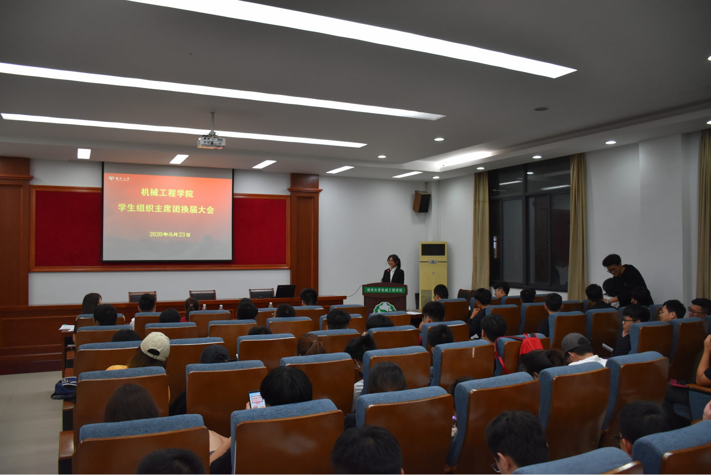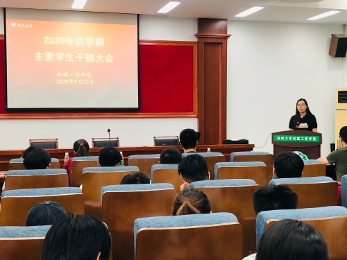 9月23日晚,我院于力行楼401报告厅举行了机械工程学院学生组织主席团换届大会及主要学生干部大会。院党委副书记张平、院团委副书记汪志国、辅导员杨超、苏慧出席本次会议。会议由院团委书记徐香翠主持。