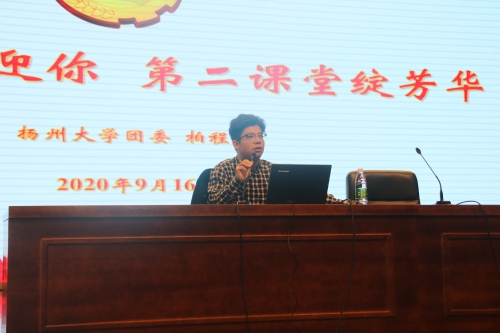 为了让新生们了解“第二课堂”成绩单的内容和意义,并熟知“PU口袋校园”系统平台的使用,10月10日上午,我院组织全体新生于文体馆报告厅听取了“美丽扬大欢迎你,第二课堂绽芳华”——第二课堂学分管理办法专题讲座,本次讲座由校团委校园文化与社团管理中心副主任柏程伟主讲,由院团委副书记汪志国主持。