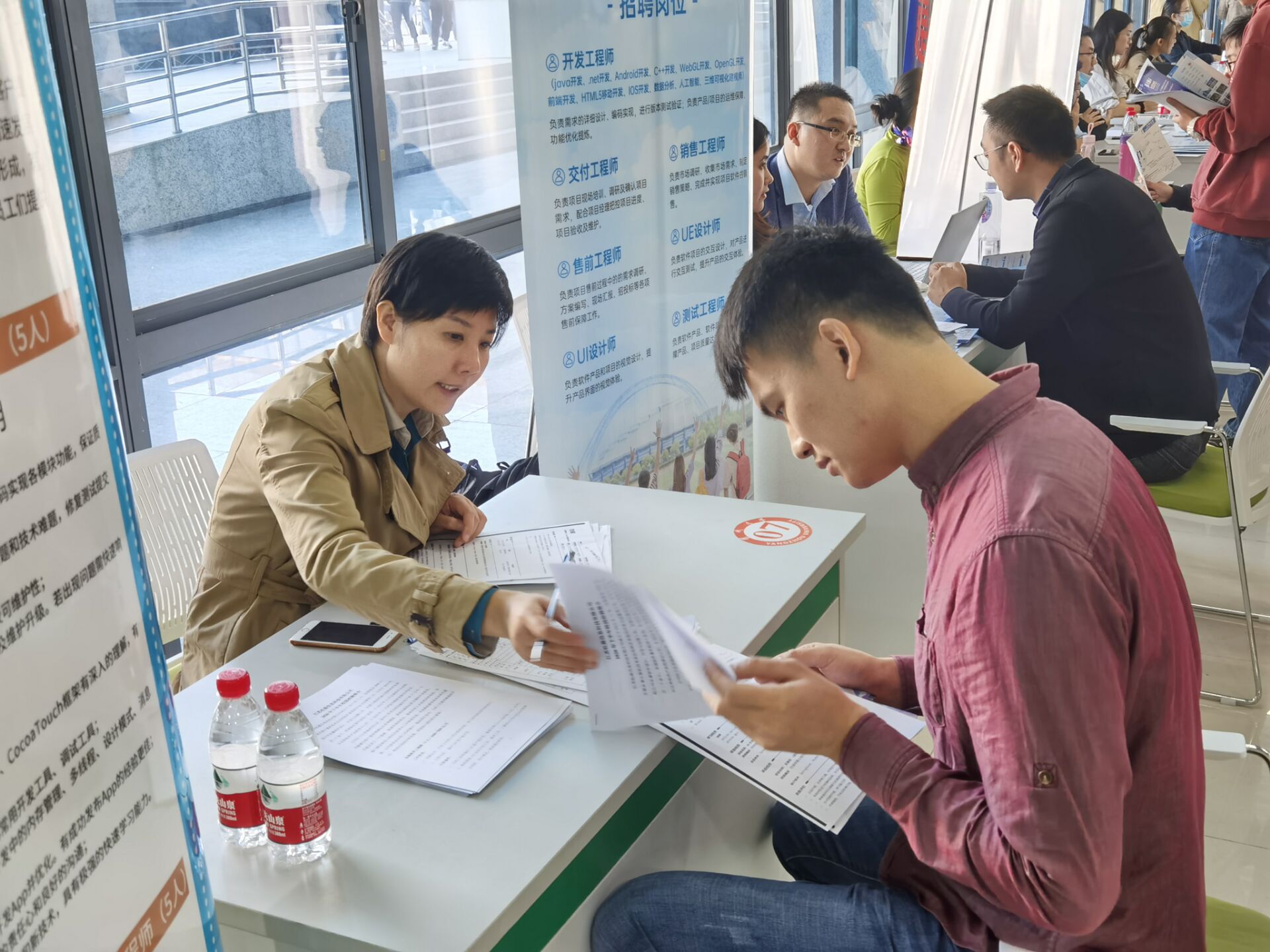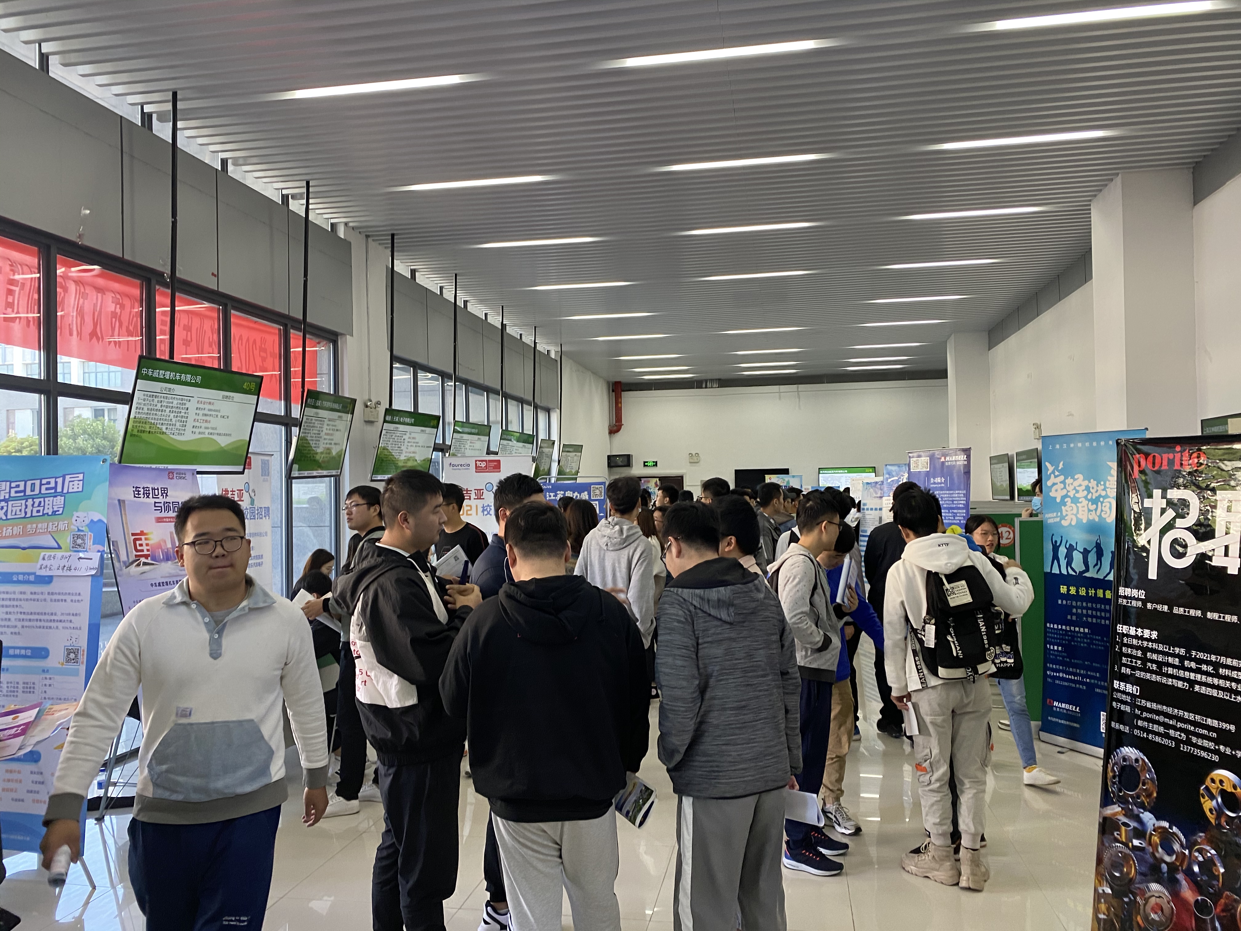 本次招聘会由我院和信息工程学院共同举办,来自上海、南京、无锡、苏州、扬州等地的近200家企业齐聚我校广揽英才,提供岗位1000余个,为当年度学校线下招聘最大规模。招聘会提供的岗位涉及制造业、科学研究与技术服务业、软件和信息技术服务业等诸多行业,为毕业生提供求职就业的广阔平台。