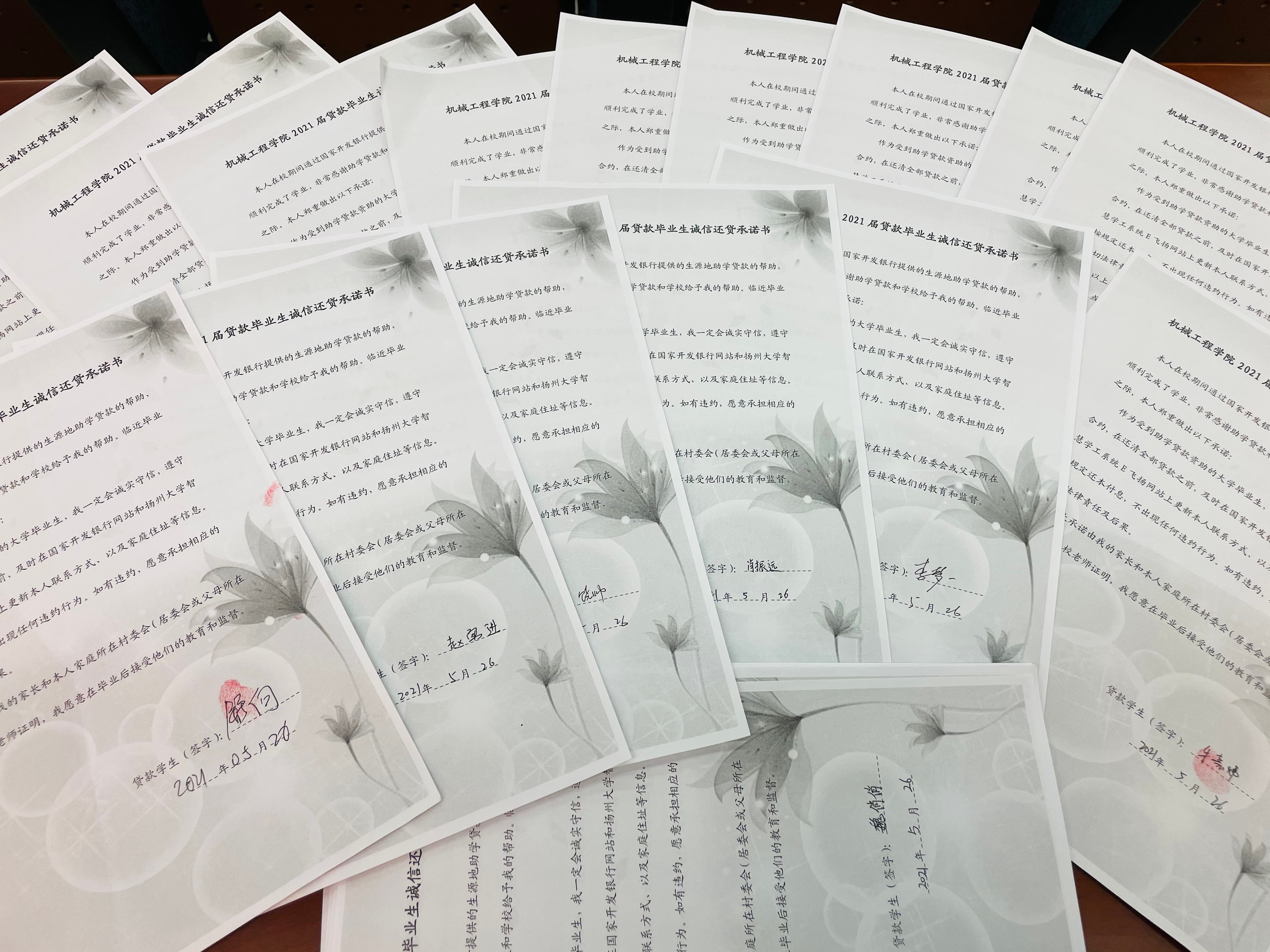 会议最后,所有贷款毕业生郑重签订了诚信还款承诺书,并在毕业确认表上按下手印。