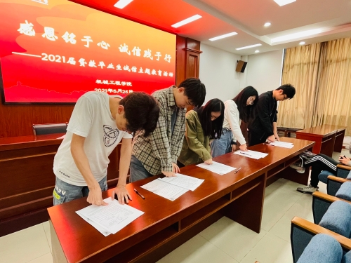 “人无信则不立”,诚信乃立身处世之本,贷款更是对一个人信用的考验。如期履约,诚信还贷,是每个接受国家助学贷款的同学应尽的责任和义务。5月26日下午,机械工程学院在力行楼401报告厅召开了“感恩铭于心,诚信践于行”主题教育活动。院团委书记徐香翠、辅导员苏慧,以及全体2021届贷款毕业生参加了活动。