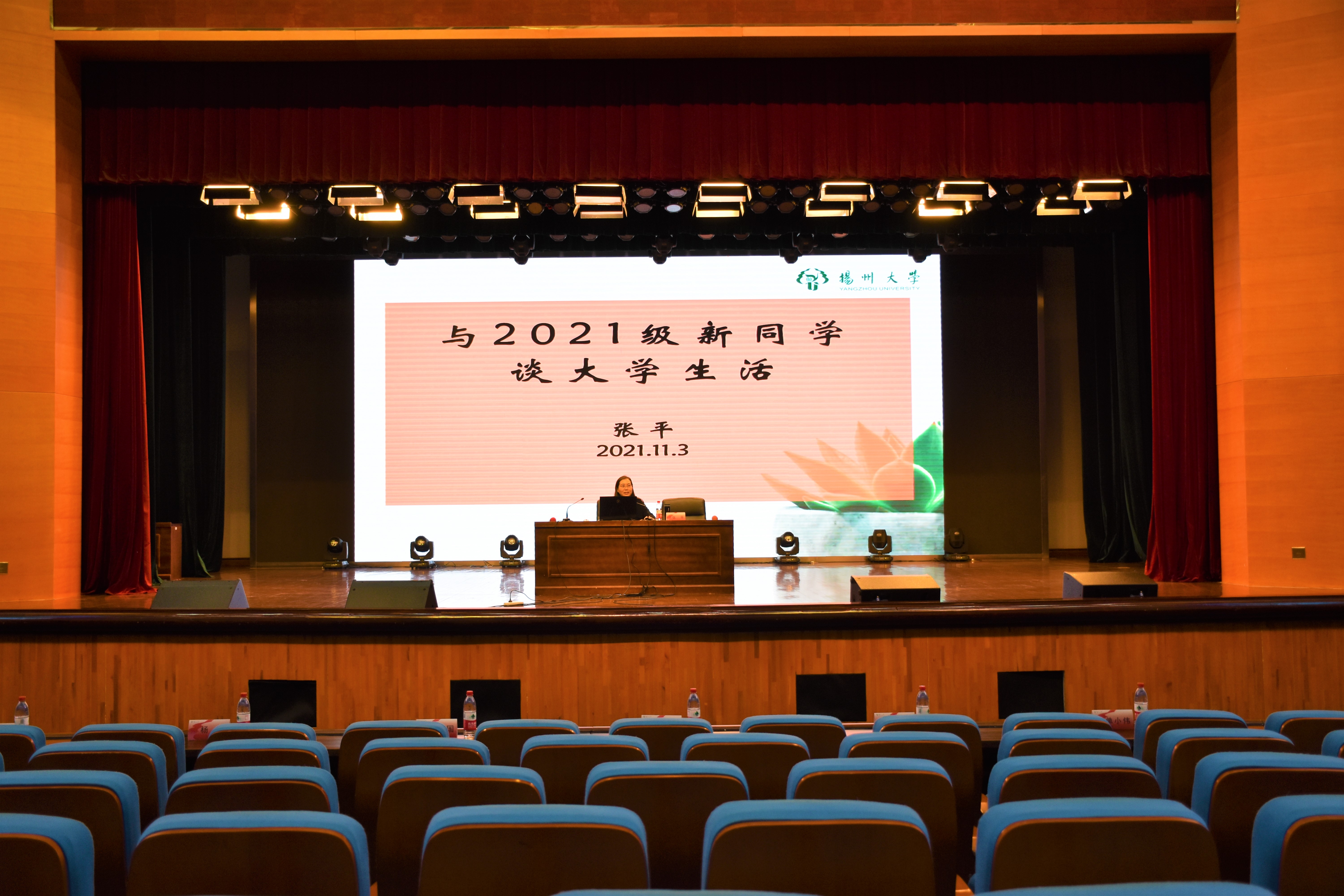 11月3日下午,我院于文体馆三楼报告厅举办2021级新生座谈会暨入党流程和要求讲座,院党委副书记张平主讲、院团委书记徐香翠、院团委副书记汪志国、学院全体辅导员以及2021级全体本科新生参加此次讲座。