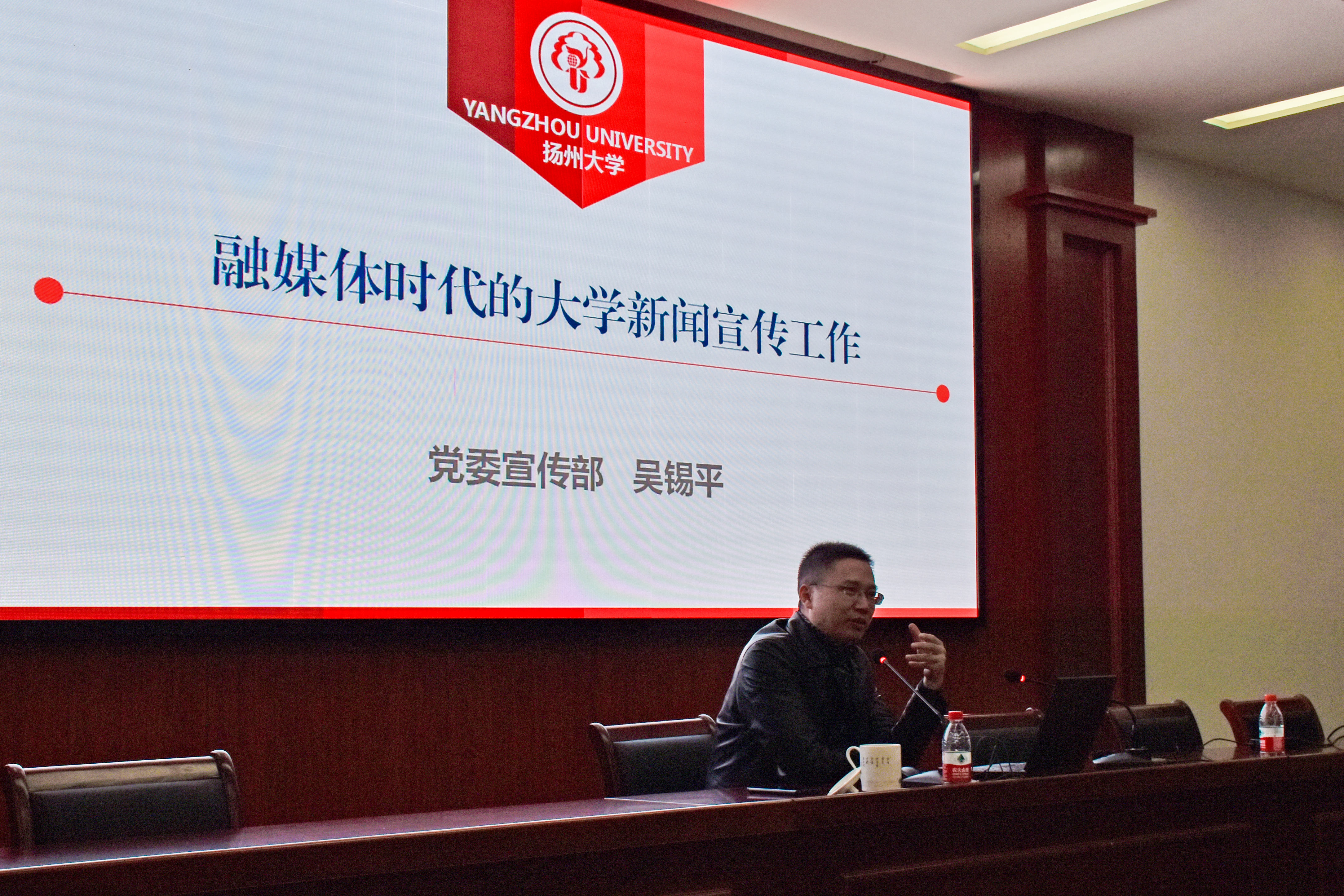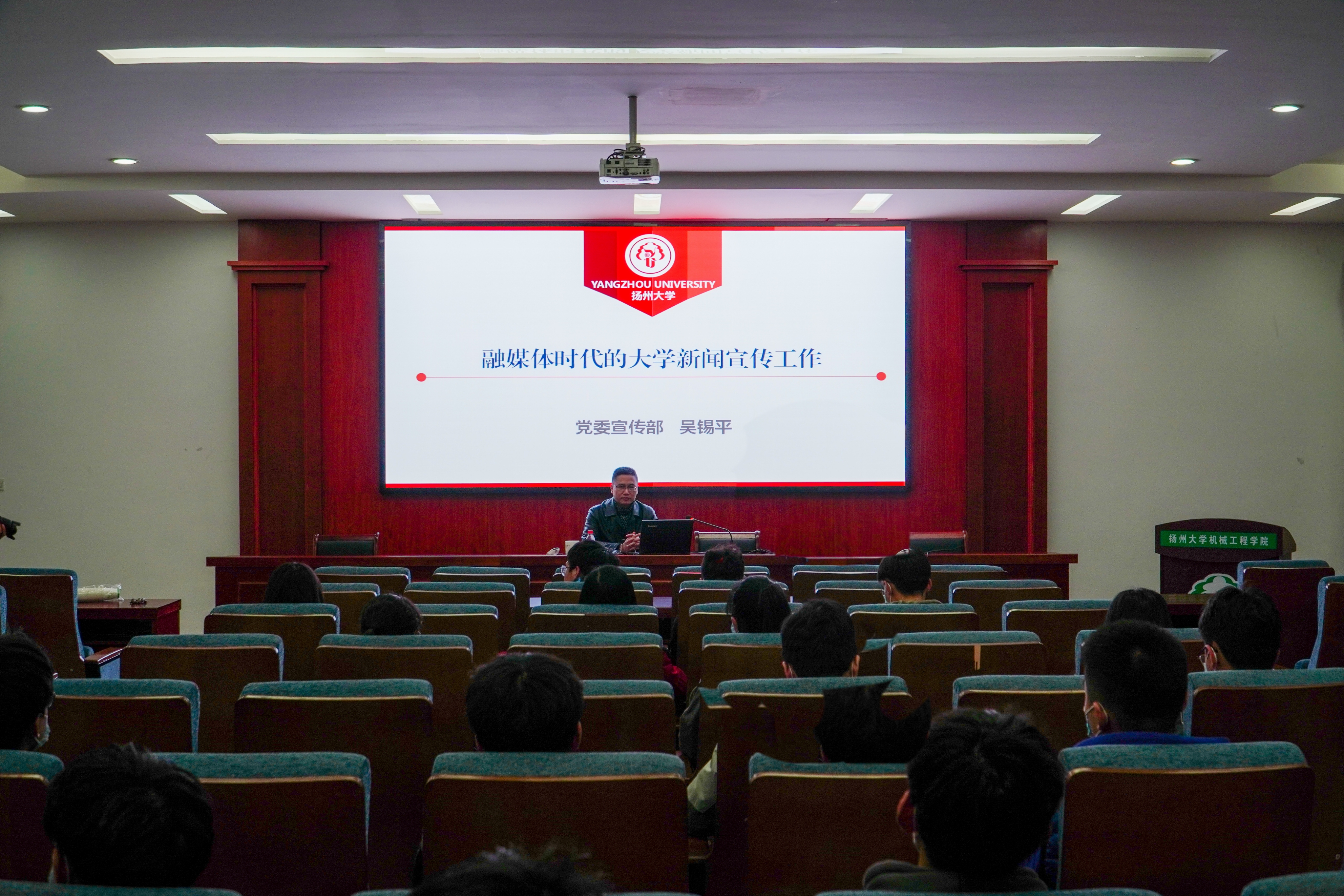 11月12日,我院于力行楼401报告厅举办了新闻写作指导会。本次指导会特别邀请了扬州大学党委宣传部副部长吴锡平主讲,院党委副书记张平、辅导员贾林森、宣报中心主任、部长团及部分新成员参加此次指导会。