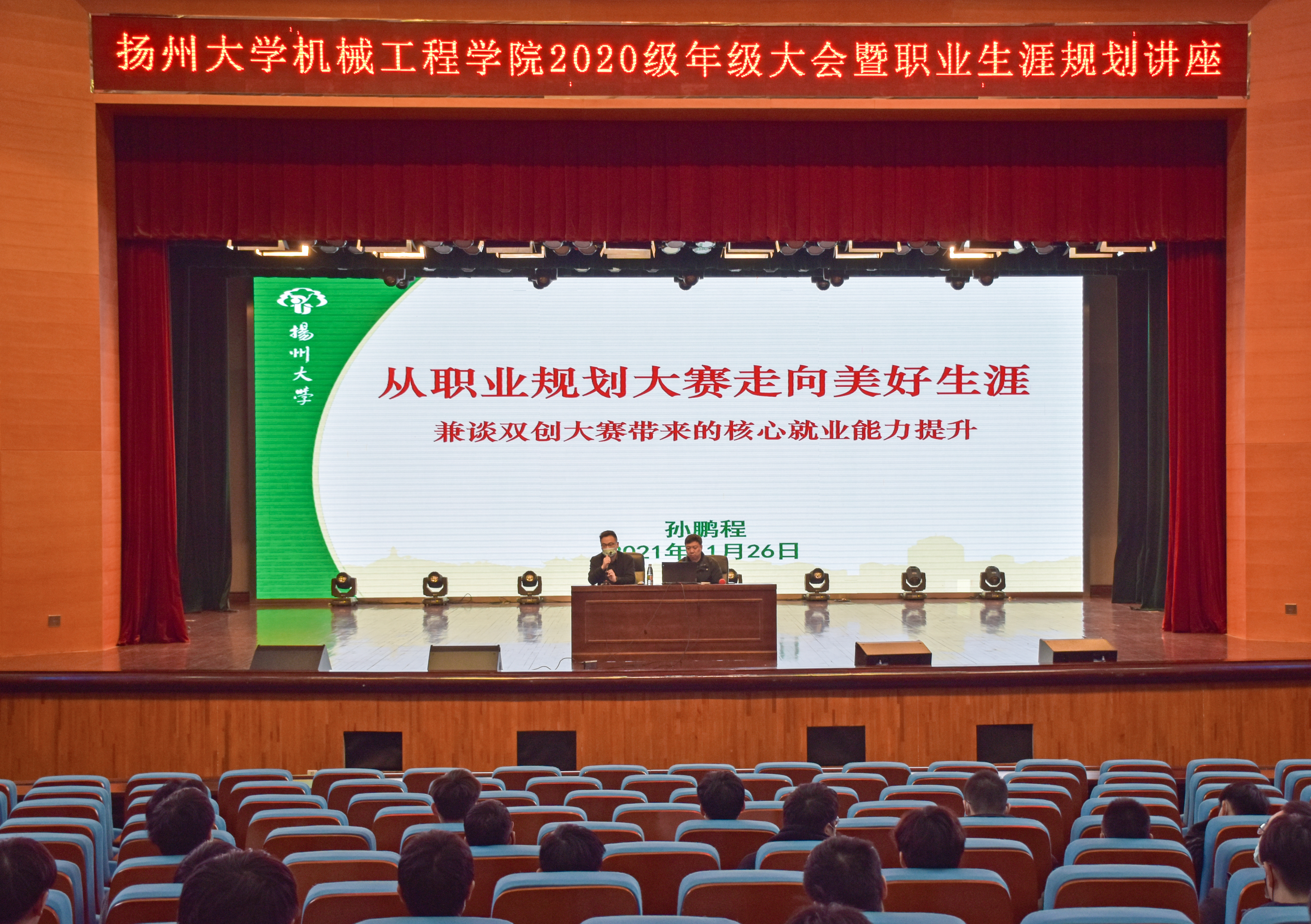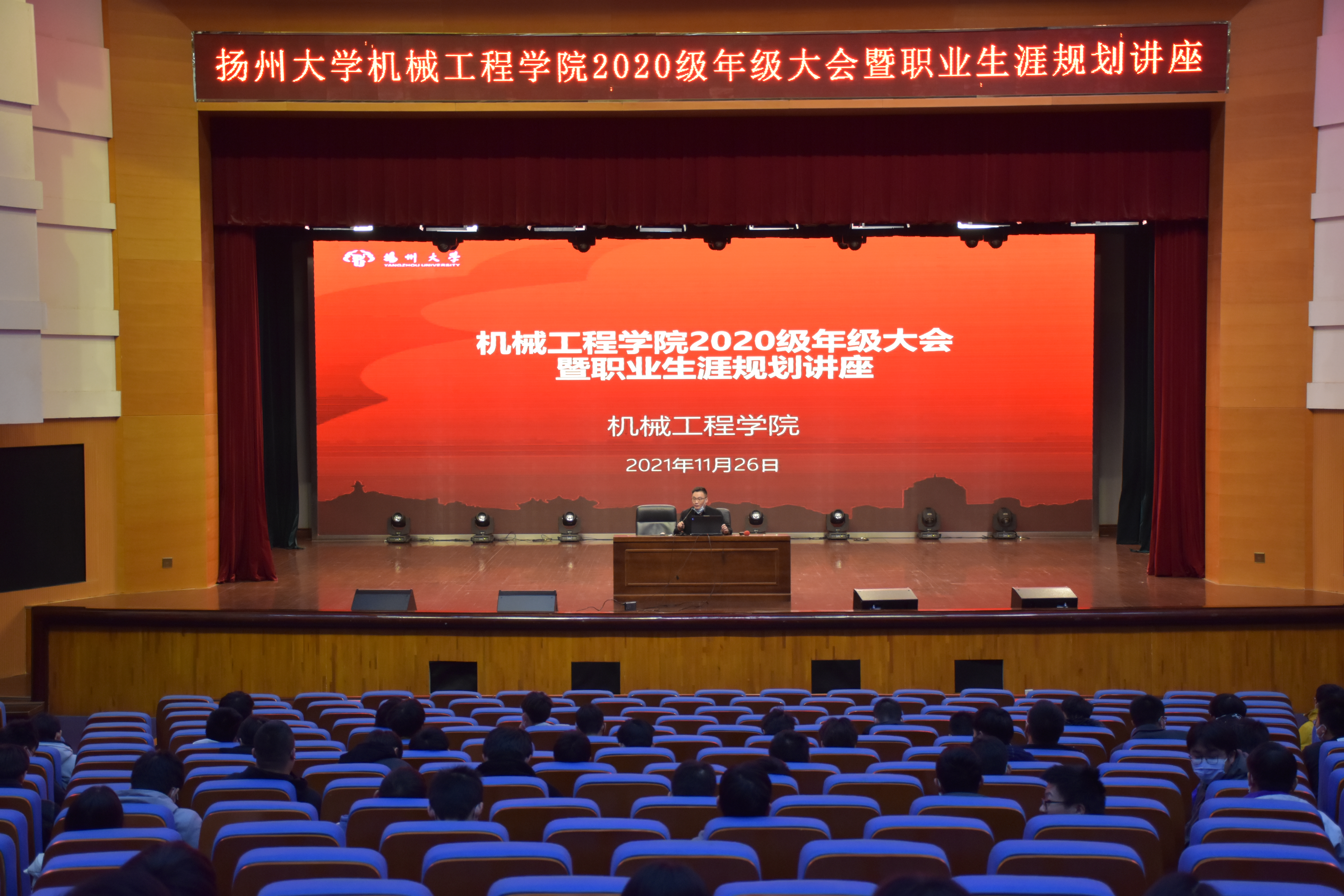 11月26日晚,我院在文体馆三楼报告厅举办了2020级本科生年级大会暨职业生涯规划讲座。院党委副书记张平、校就业指导中心副主任孙鹏程、院团委副书记汪志国以及全体2020级本科生参加了本次讲座。